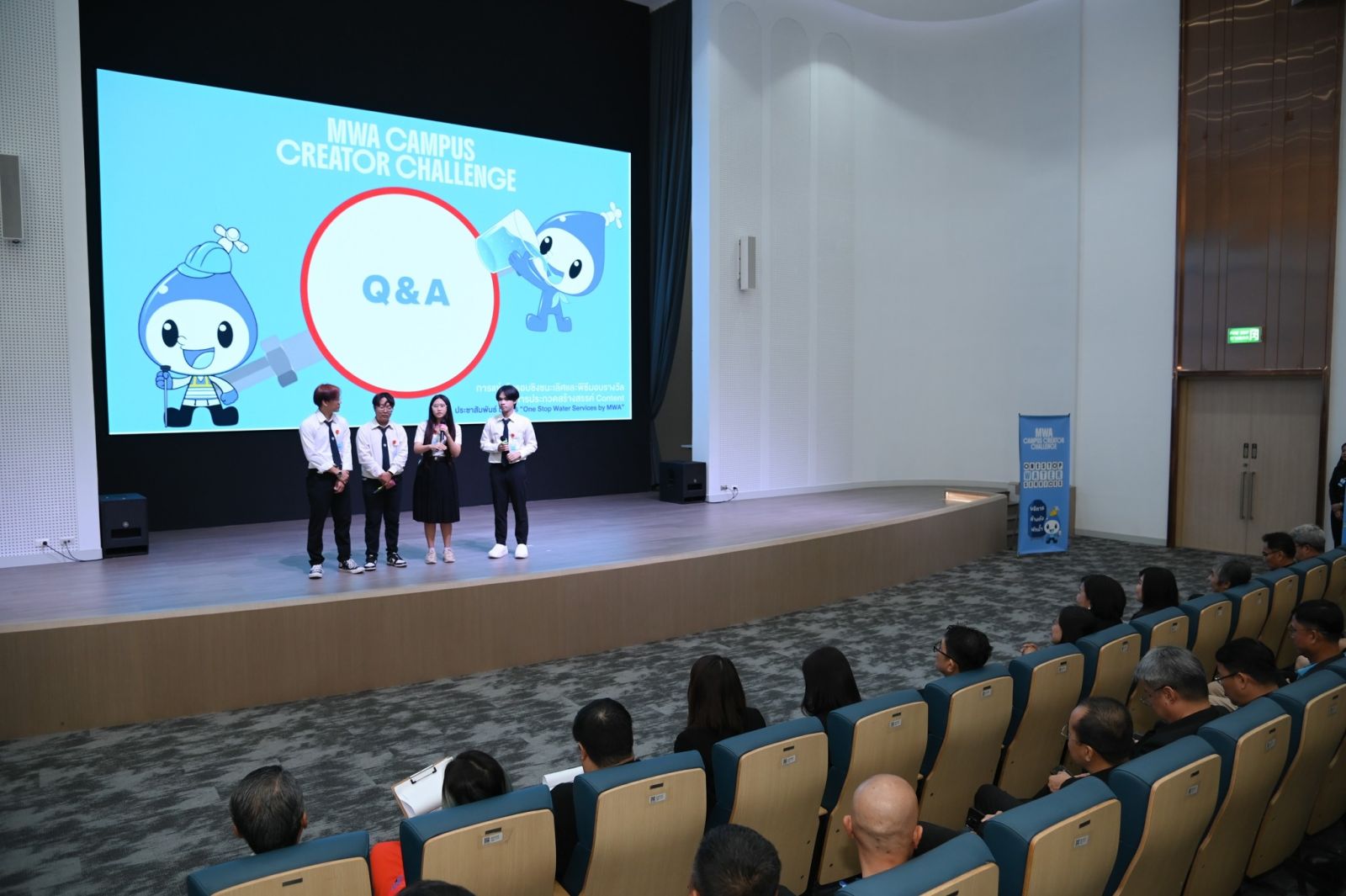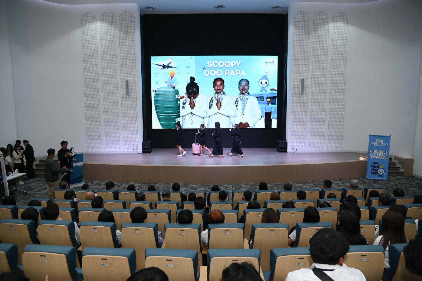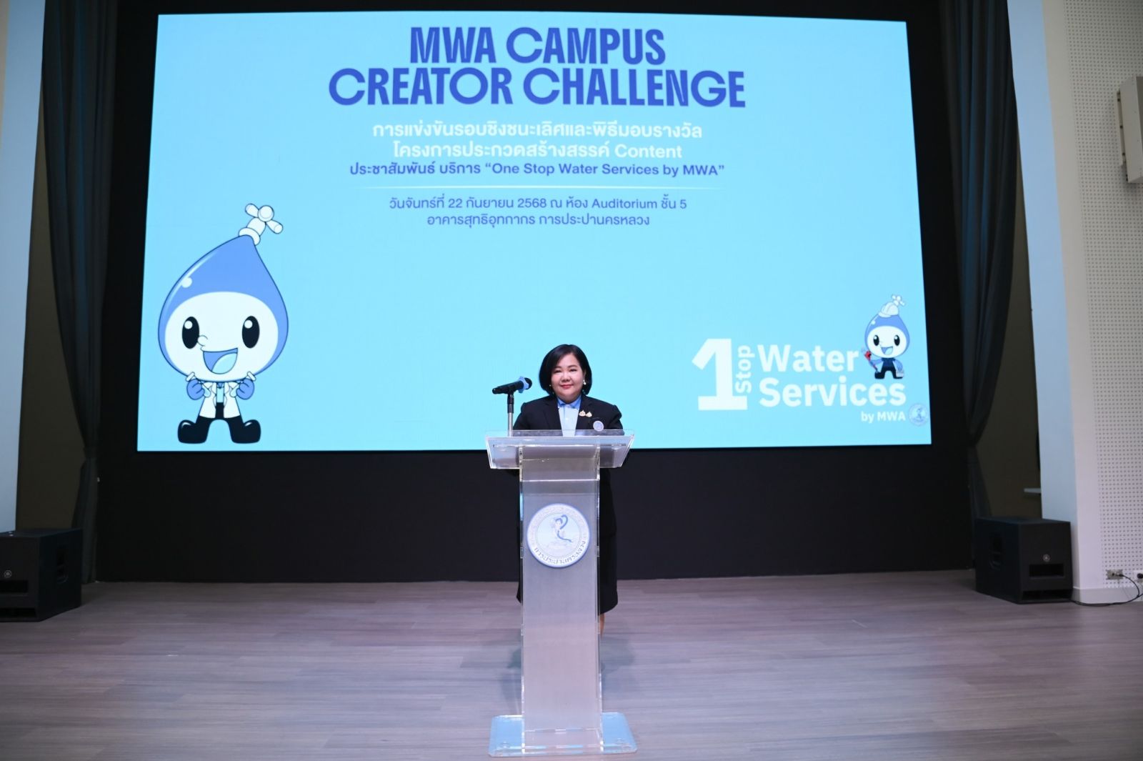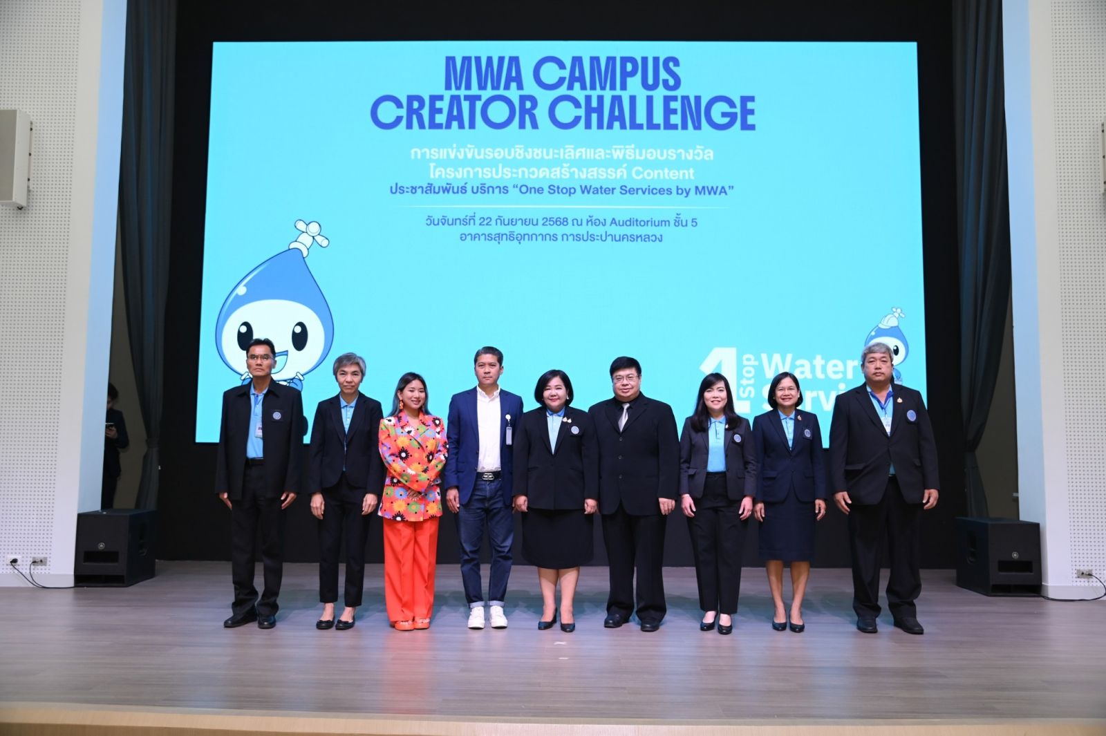 เมื่อวันที่ 22 กันยายน 2568 เวลา 09.30 น. ณ ห้อง Auditorium อาคารสุทธิอุทกากร นางสาวสุวรา ทวิชศรี ผู้ว่าการการประปานครหลวง (กปน.) เป็นประธานในพิธีมอบรางวัลโครงการประกวดสร้างสรรค์คอนเทนต์ 'MWA CAMPUS CREATOR CHALLENGE' ที่เปิดโอกาสให้นิสิตนักศึกษาได้แสดงศักยภาพในการสร้างสรรค์คลิปสั้น สร้างการรับรู้และความเข้าใจในบริการ สะท้อนภาพลักษณ์ความเป็นผู้เชี่ยวชาญด้านการประปาอย่างครบวงจร ภายใต้แนวคิด 'One Stop Water Services by MWA' ซึ่งได้รับการตอบรับอย่างดีจากน้อง ๆ นิสิต นักศึกษา และคณาจารย์จากมหาวิทยาลัยชั้นนำของประเทศ มีผู้เข้าร่วมประกวดมากถึง 1,100 คน จาก 272 ทีม และคัดเลือกผลงานที่โดดเด่น ซึ่งได้มานำเสนอผลงานในรอบชิงชนะเลิศเพียง 15 ทีมสุดท้าย สรุปผลรางวัลของทีมที่ได้รับทุนการศึกษา พร้อมโล่รางวัลและประกาศนียบัตร ดังนี้