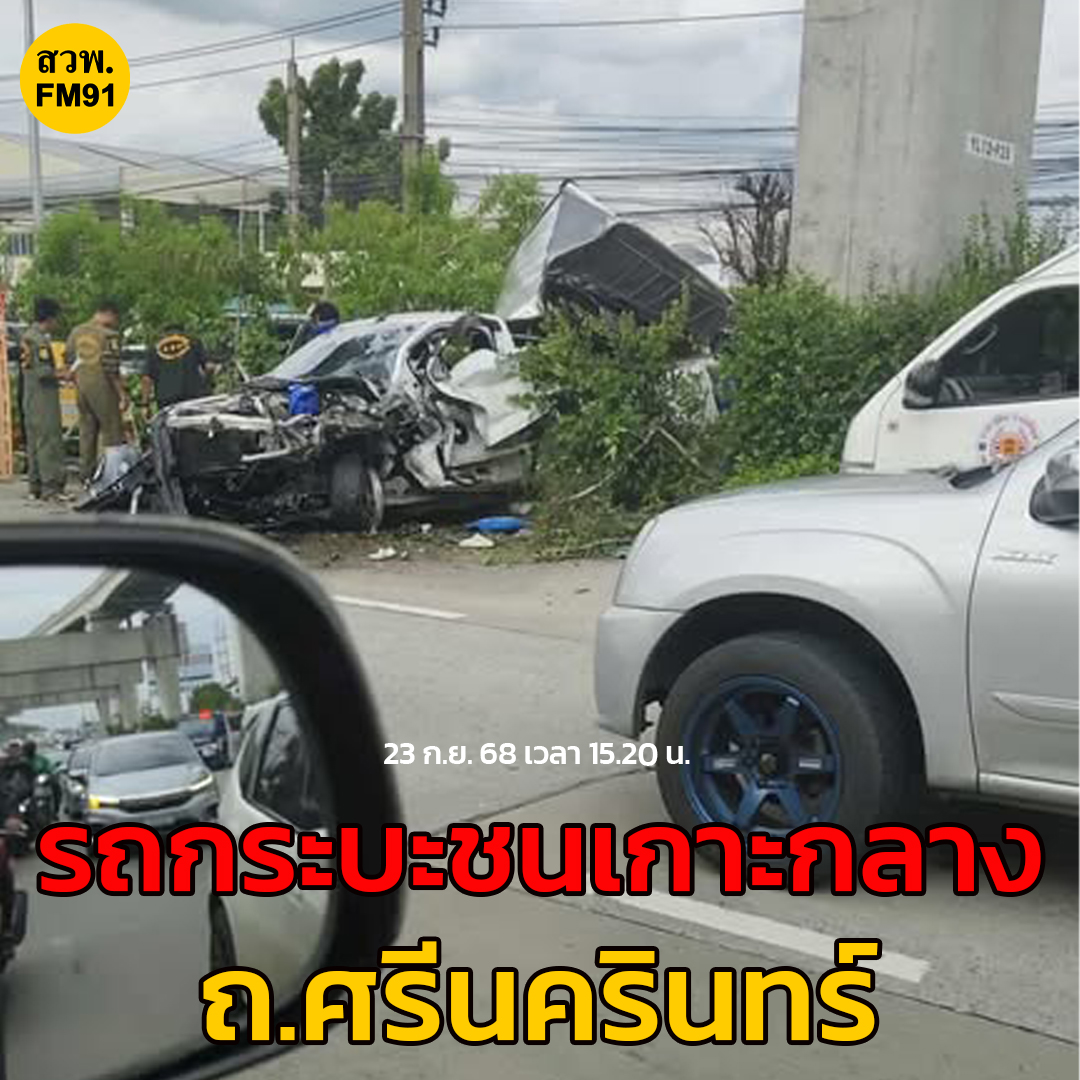 23 ก.ย. 68 เวลา 15.20 น. ถ.ศรีนครินทร์ ขาเข้า มุ่งหน้า แยกพัฒนาการ เลยซอยศรีนครินทร์ 24 เล็กน้อย รถกระบะตู้ทึบชนเกาะกลาง มีผู้บาดเจ็บ 1 ราย และมีคราบน้ำมันหกรดพื้นผิวจราจร อยู่ระหว่างเคลื่อนย้าย