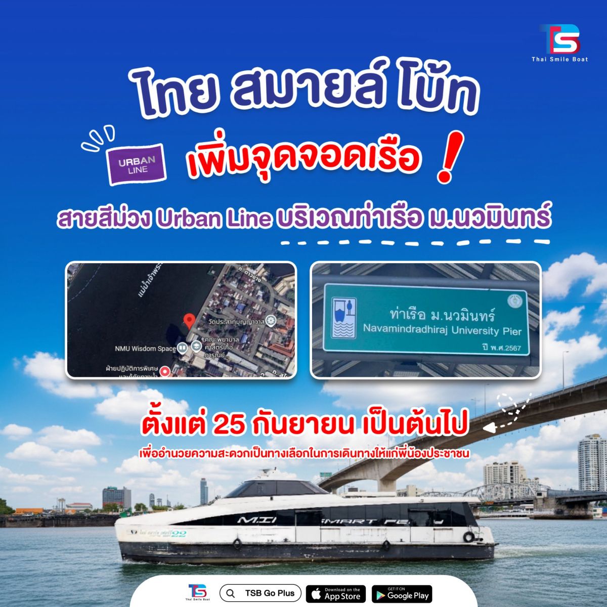 ล่าสุด ไทย สมายล์ โบ้ท จึงได้เพิ่มจุดจอดเรือ สายสีม่วง Urban Line บริเวณท่า ม.นวมินทร์