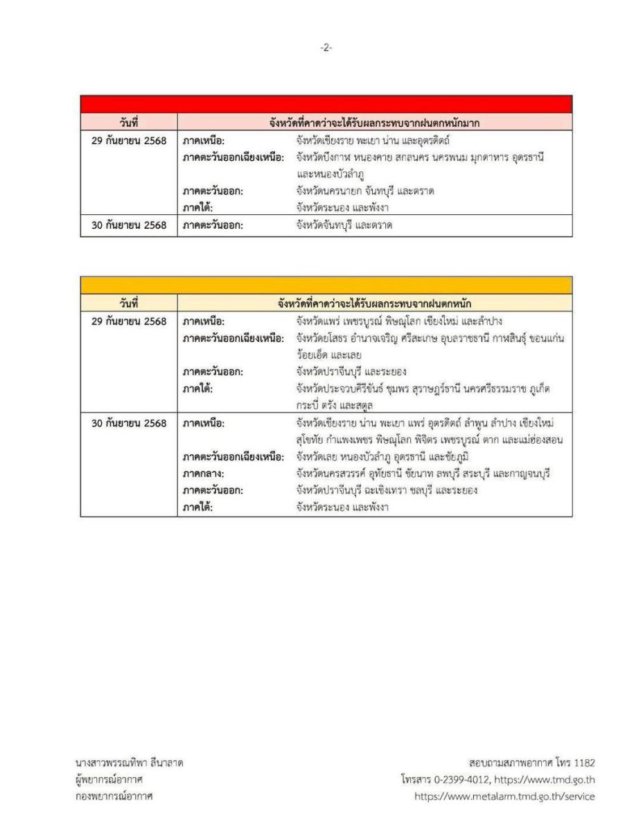 • โดยเฉพาะพื้นที่ลาดเชิงเขา ลุ่มน้ำ และเขตน้ำท่วมขัง ต่อเนื่องอีก 1–3 วัน
