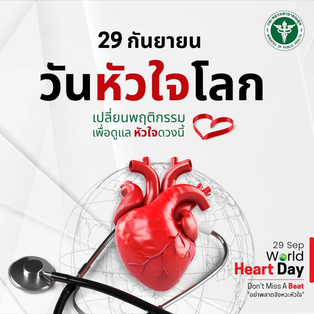 29 กันยายน ของทุกปี เป็นวันหัวใจโลก ซึ่งถือเป็นอีกหนึ่งวันสำคัญที่ไม่ควรมองข้าม เพราะโรคหัวใจเป็นสาเหตุการเสียชีวิตอันดับต้น ๆ ของคนทั่วโลก Don't miss a beat อย่าพลาดจังหวะหัวใจ