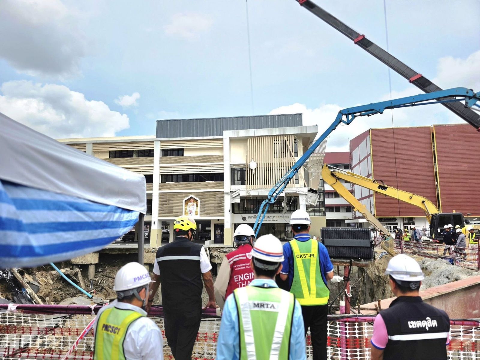 (30 ก.ย. 68) เวลา 17.20 น. นายชัชชาติ สิทธิพันธุ์ ผู้ว่าราชการกรุงเทพมหานคร ลงพื้นที่ติดตามความคืบหน้ากรณีถนนสามเสน เขตดุสิต ทรุดตัว โดยกล่าวว่า ตอนนี้ได้เริ่มกระบวนการเอาทรายลงหลุมยุบ (backfill) แต่มีการปรับแผนเล็กน้อยเนื่องจากตรวจสอบพบมีโพรงใต้ปูนที่เทลงไป จึงหยุดการเททราย และทำการฉีดคอนกรีตเข้าไปในรูเพื่ออุดโพรงก่อน ซึ่งเป็นไปตามกระบวนการอย่างรอบคอบตามที่ รฟม. และผู้เชี่ยวชาญวางแผนไว้ และจะได้ถมทรายต่อ โดยได้มีการกำหนดจุด เส้นศูนย์กลาง (centerline) ของอุโมงค์ เพื่อเป็นแนวในการถมทราย ส่วนรถบรรทุกทรายก็มาจอดรอแล้ว