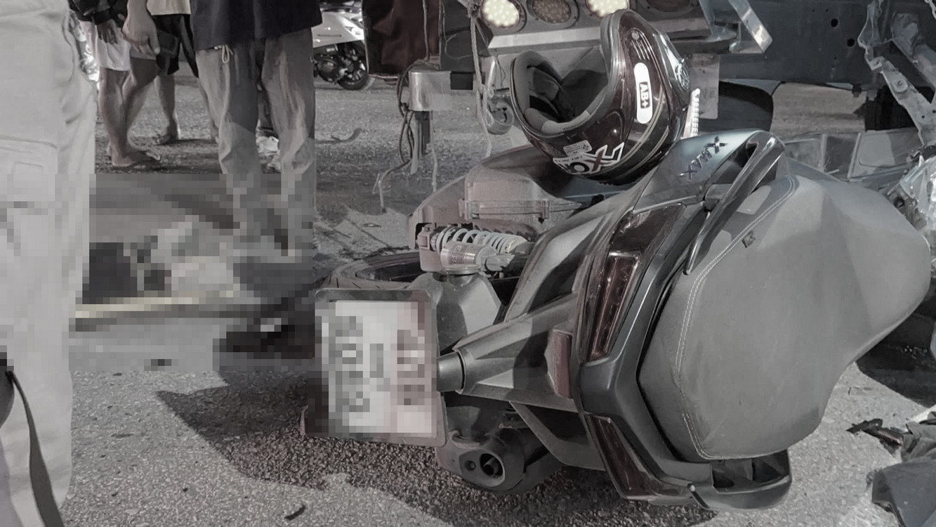 ที่เกิดเหตุ พบรถจักรยานยนต์ ยามาฮ่า เอนแม็กซ์ สีเทา ทะเบียน ชลบุรี ล้มคว่ำอยู่ใต้ล้อหลังรถบรรทุกสินค้า 6 ล้อ ฮีโน่ สีขาว ทะเบียน สิงห์บุรี พบว่ามีผู้เสียชีวิต 2 ราย เป็นชายไทย อายุ 29 ปีคนขับขี่ และ ชายไทย อายุ 48 ปีคนซ้อนท้าย ทราบต่อมาว่าเป็นพี่น้องกัน นอนเสียชีวิตอยู่ข้างรถจักรยานยนต์