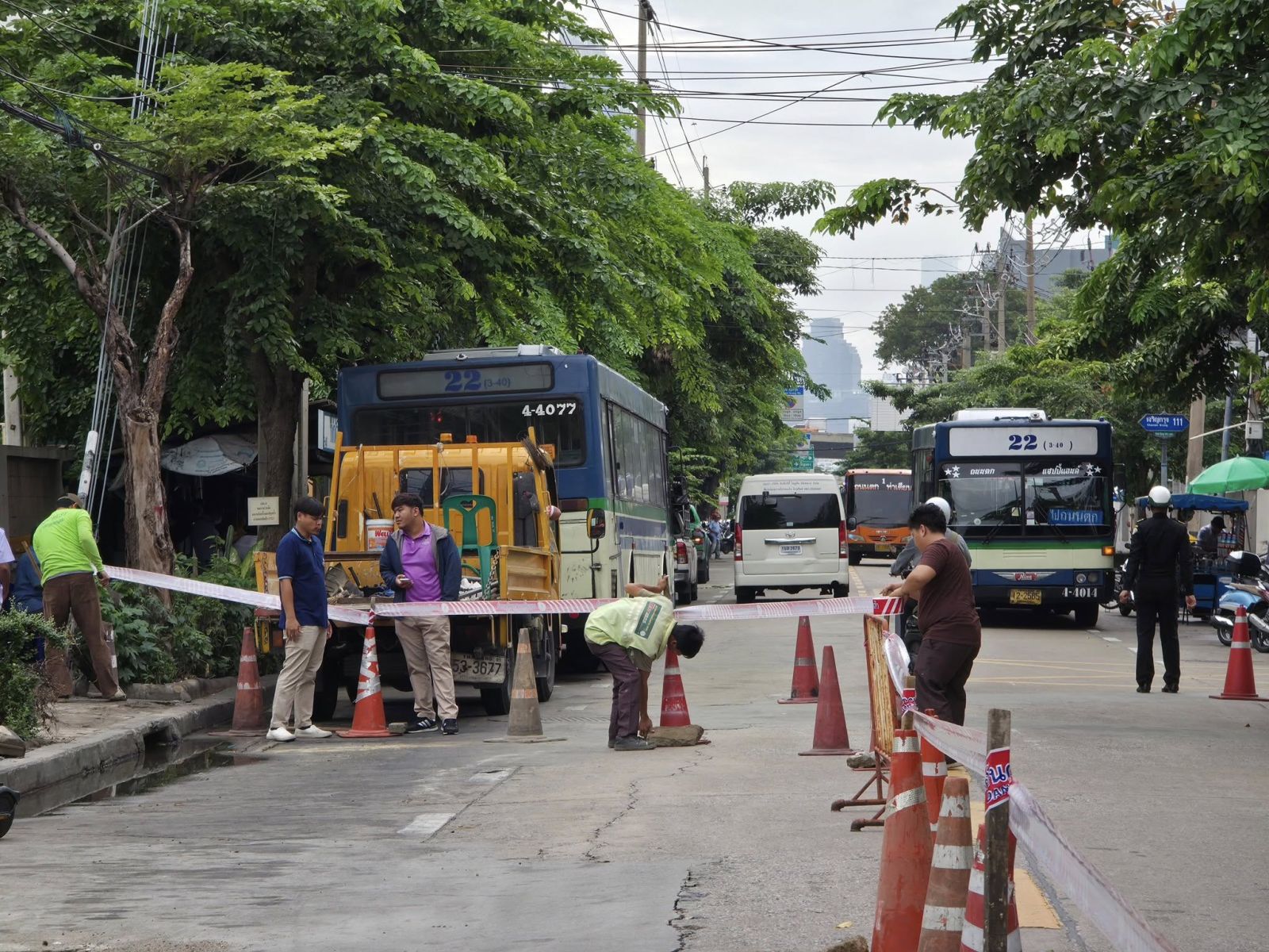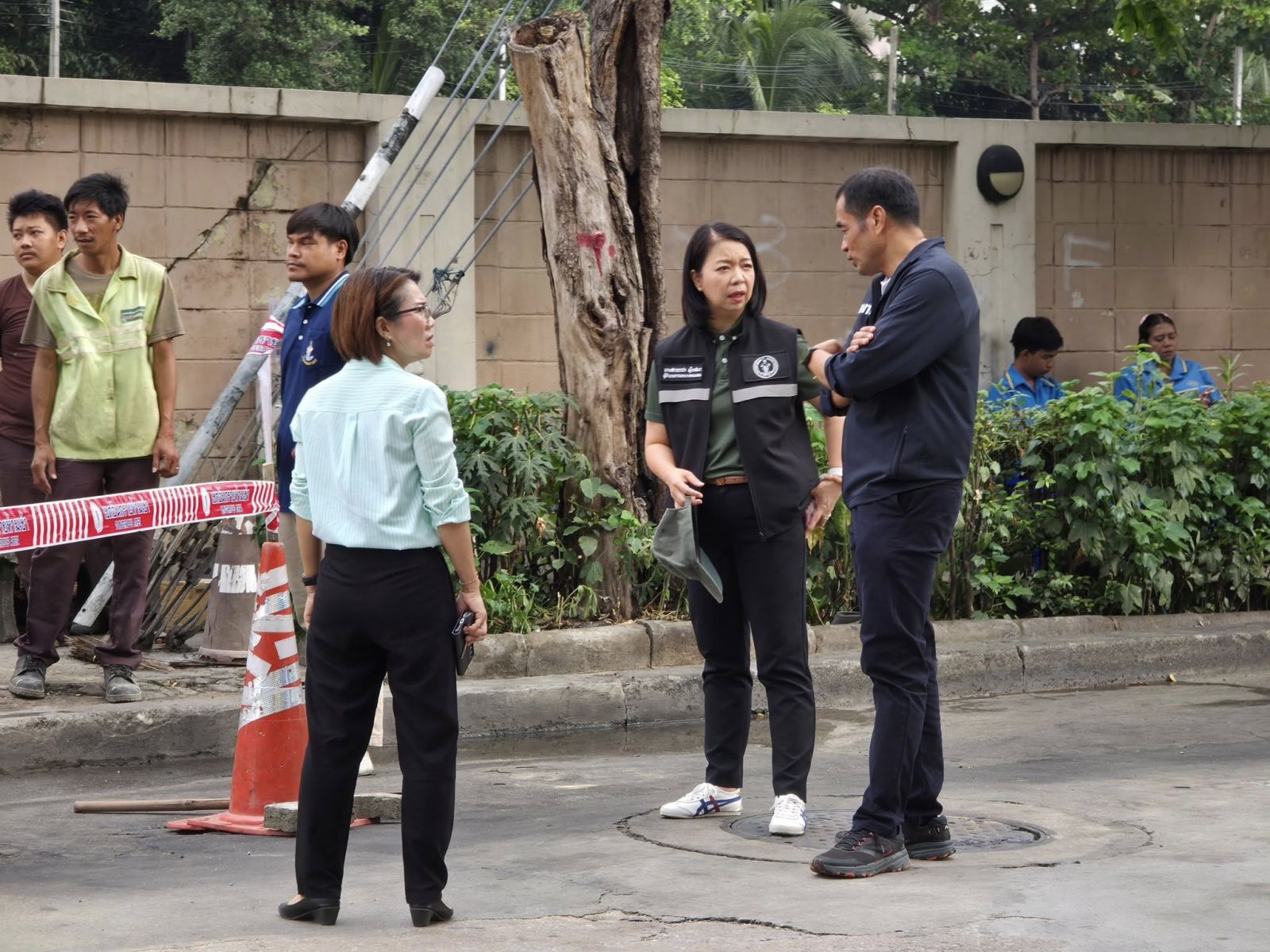 ในการนี้ นางสาวอรชา มุ้ยเสมา ผู้อำนวยการเขตบางคอแหลม พร้อมด้วย นายวัชรพงศ์ ธนพงศ์เดชสกุล และนายวัลลภ อ้นรัตน์ ผู้ช่วยผู้อำนวยการเขตฯ หัวหน้าฝ่ายปกครอง หัวหน้าฝ่ายโยธา หัวหน้าฝ่ายรักษาความสะอาดและสวนสาธารณะ และเจ้าหน้าที่ ร่วมลงพื้นที่ตรวจสอบเหตุ ณ บริเวณหน้าการไฟฟ้าเขตยานนาวา ถนนตก เขตบางคอแหลม