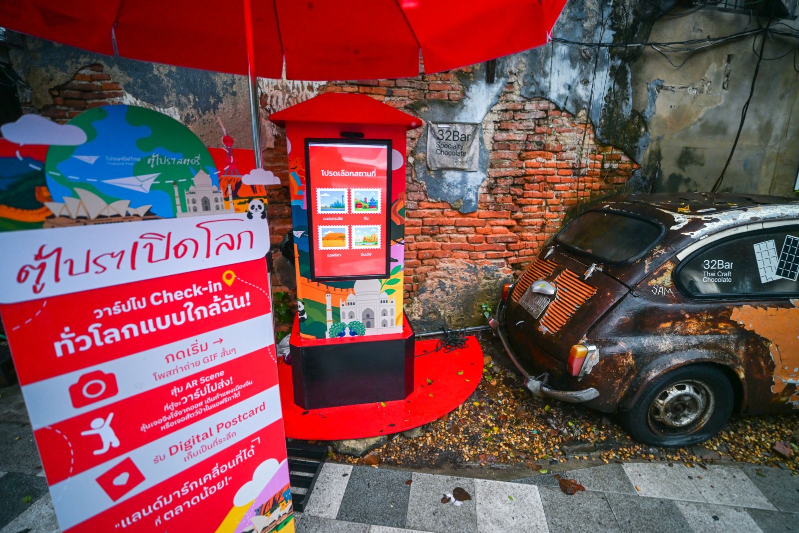 โดยเลือกย่าน “ตลาดน้อย” เป็นพื้นที่นำร่อง นับเป็นการเชื่อมโยง 2 ความคลาสสิกระหว่างตู้ไปรฯ สีแดงกับตลาดน้อยชุมชนเก่าแก่ริมเจ้าพระยา ให้กลายเป็นเรื่องเล่าใหม่ที่ทันสมัย และเกิดเป็นพื้นที่สร้างสรรค์ ที่ผสมผสานอดีตกับปัจจุบันเข้าด้วยกันอย่างลงตัว โดยจุดเด่นของกิจกรรมอยู่ที่ 5 Touch Point Experience ที่กระจายอยู่ทั่วชุมชน ไม่ว่าจะเป็น “ตู้ไปรฯ ดูธรรมชาติ” ที่มอบพลังใจผ่านภาพและเสียงธรรมชาติภายในตู้ ช่วยรีเซ็ตความรู้สึกและย้ำเตือนว่าธรรมชาติยังคงเป็นที่พักพิงของทุกคน ตั้งอยู่ท่ามกลางบรรยากาศสตรีทอาร์ตของย่านเก่า ต่อด้วย “ตู้ไปรฯ เต้นได้” ที่เพิ่มสีสันและความสนุกด้วยเกมเต้นธีม “ขยับร่างกายส่งพัสดุ” เพื่อปลดปล่อยพลังและคลายอาการออฟฟิศซินโดรม ณ ตึกสีน้ำเงิน