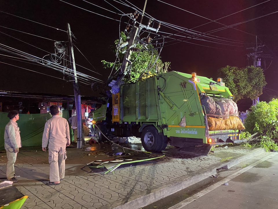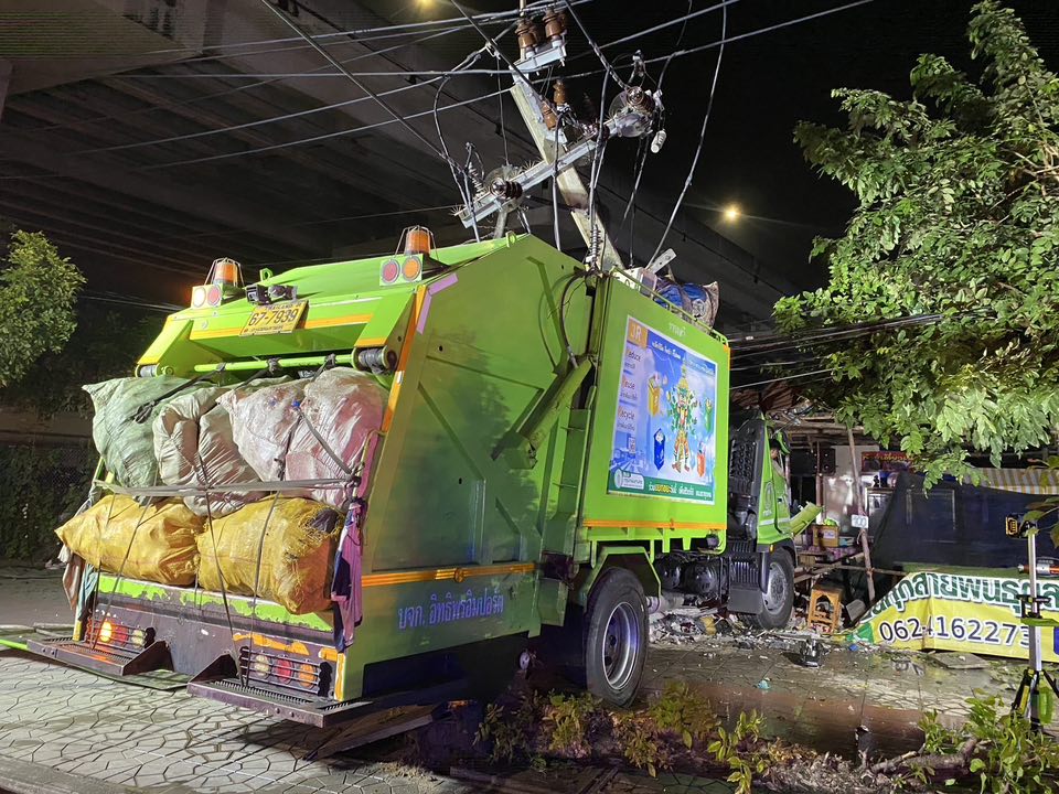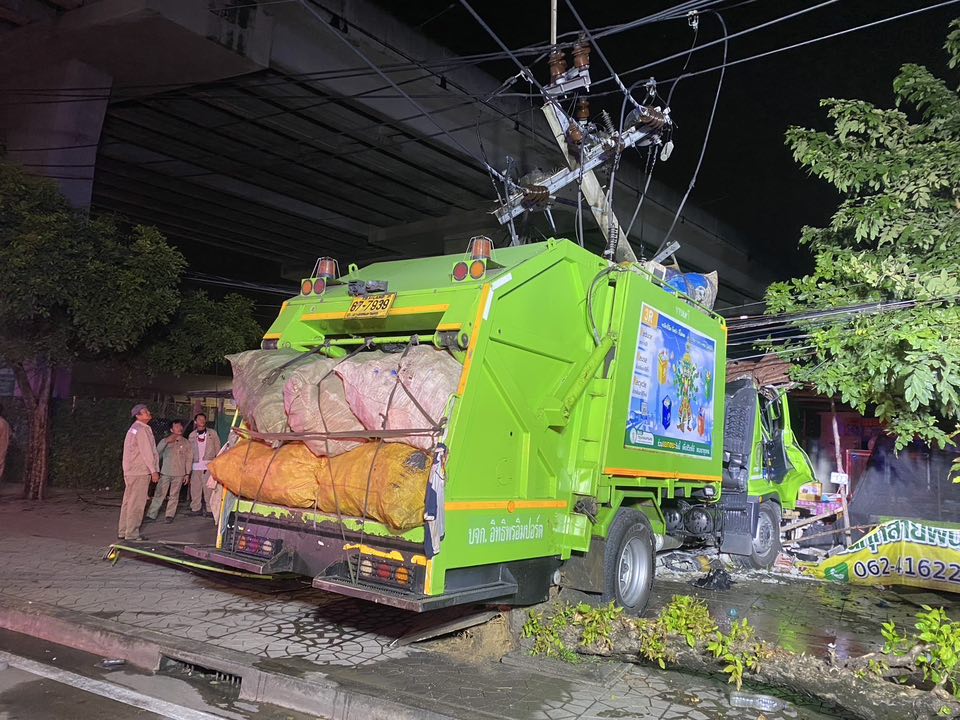 เมื่อเวลา 04.00 น.วันที่ 5 ต.ค.68 ร.ต.ท.ภูริฐา ผางสง่า รองสารวัตร(สอบสวน) สน.สายไหม รับแจ้งเหตุรถขยะ 6 ล้อพุ่งชนเสาไฟฟ้า ริมถนนเทพรักษ์ แขวงท่าแร้ง เขตบางเขน กทม. จึงรุดไปตรวจสอบพร้อมประสานการไฟฟ้านครหลวง หน่วยกู้ชีพคุ้มเกล้า รพ.ภูมิพลฯ และอาสาสมัครมูลนิธิร่วมกตัญญู