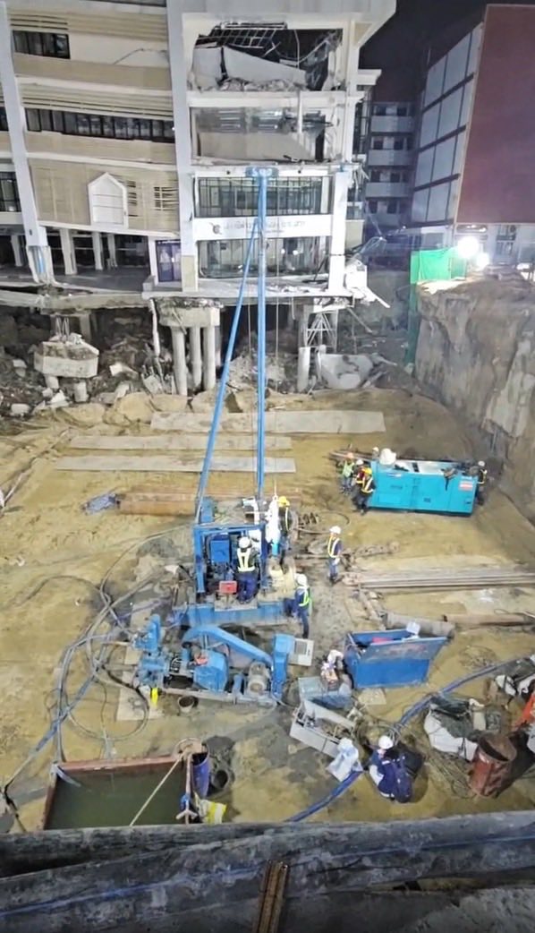 (6 ต.ค. 68) นายชัชชาติ สิทธิพันธุ์ ผู้ว่าราชการกรุงเทพมหานคร ติดตามความคืบหน้าสถานการณ์ถนนสามเสนทรุด เขตดุสิต ในช่วงค่ำวันนี้ โดยกล่าวว่า ขณะนี้หน้างาน ผู้รับเหมาและ รฟม. ร่วมกันทำงานอย่างต่อเนื่อง โดยปรับพื้นดินในหลุมเป็นระดับและทำ coring ดูสภาพชั้นดินให้ละเอียดจะได้วางแผนให้ถูกต้อง โดยขุดลงไปลึกราว 23 เมตร ประมาณ 8 หลุม ข้างละ 4 หลุม ขนานกับแนวอุโมงค์ เพื่อดูชั้นดินตามแนวอุโมงค์ว่าเป็นอย่างไร