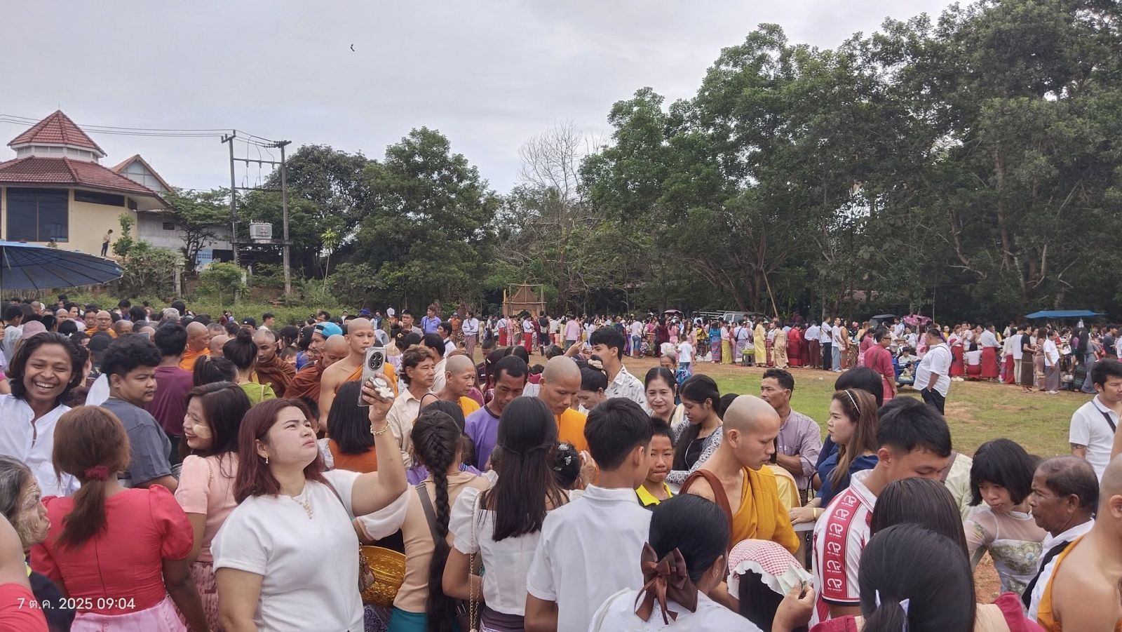 เช้าวันนี้ (7 ตุลาคม 2568) ที่บริเวณลานหน้า วัดสมเด็จตำบลหนองลู อำเภอสังขละบุรี จังหวัดกาญจนบุรี นักท่องเที่ยวและพุทธศาสนิกชน ชาวอำเภอสังขละบุรี และชาวมอญกะเหรี่ยง ร่วมตักบาตรเทโวโรหณะ เนื่องในวันออกพรรษาประจำปี 2568 โดยมีการจัดทำลู่ไม้ไผ่ที่กั้น ไว้เป็นทางเดิน พร้อมทั้งประดับประดาด้วยริ้วธงต่างๆ เพื่อความสวยงาม เป็นระยะทางยาวกว่า 1 กิโลเมตร เริ่มจากบริเวณลานหน้าวัด โดยได้นิมนต์พระสงฆ์มาจากทุกวัดในเขตพื้นที่อำเภอสังขละบุรี รวมกว่า 450 รูป ขณะที่พุทธศาสนิกชนต่างเตรียม ดอกไม้ ธูป เทียน ข้าวสารอาหารแห้ง ตามกำลังศรัทธา มารอใส่บาตรถวายแด่พระภิกษุสงฆ์อย่างเนืองแน่น