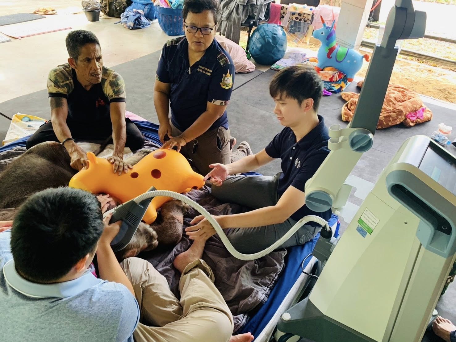 ทั้งนี้วันนี้ทีมงานกายภาพบำบัด ของ ผศ.ดร.ศิริพันธุ์ คงสวัสดิ์ คณะเทคนิคการแพทย์ มหาวิทยาลัยเชียงใหม่ ได้เข้าร่วมทำการรักษาโดยใช้เครื่องมือทางการแพทย์ชนิด Peripheral Magnetic Stimulation (PMS)