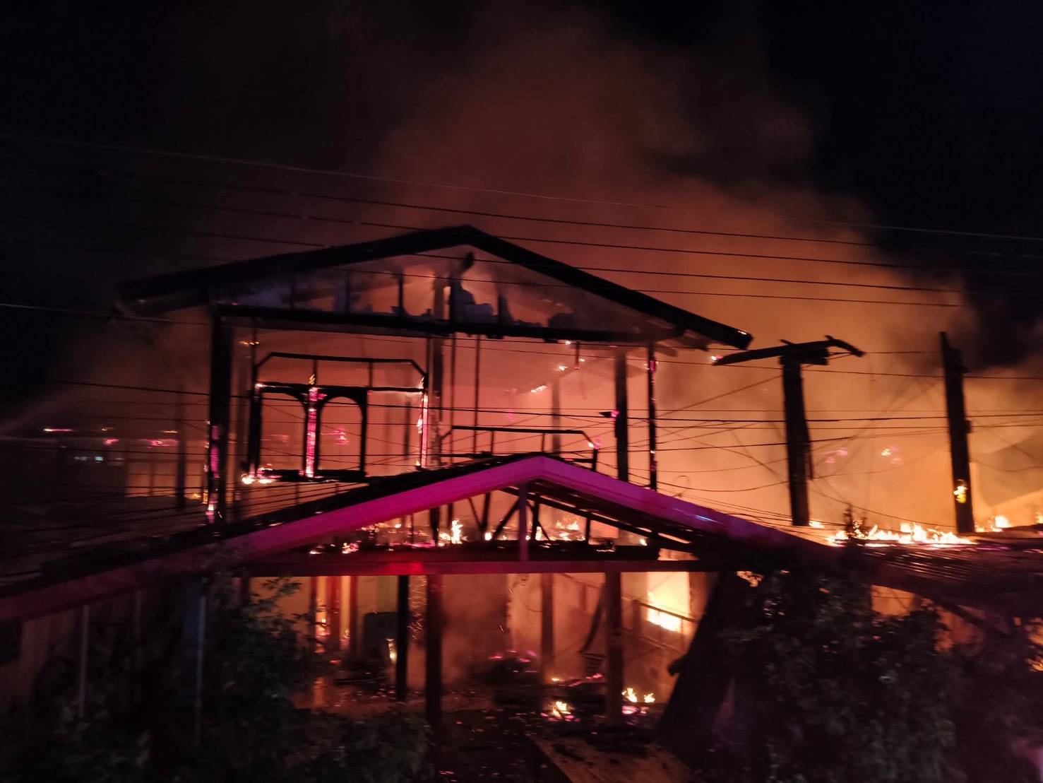 เมื่อไปถึงที่เกิดเหตุ พบเพลิงกำลังโหมไหม้อย่างรุนแรงกับบ้านเรือนประชาชนเสียหายรวม 5 หลัง และมีแนวโน้มลุกลามไปยังบ้านข้างเคียง เจ้าหน้าที่ต้องเร่งฉีดน้ำสกัดเพลิงท่ามกลางความโกลาหล ชาวบ้านต่างช่วยกันขนย้ายสิ่งของมีค่าหนีไฟ