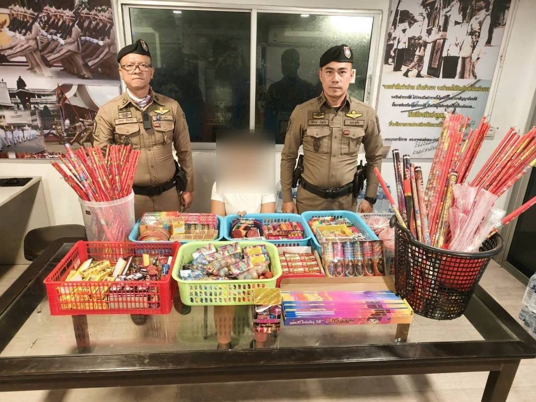 สายตรวจ สภ.เมืองภูเก็ต จับกุม 3 คนขายพลุ ประทัด ไม่ได้รับอนุญาต ที่บริเวณสะพานหินภูเก็ต