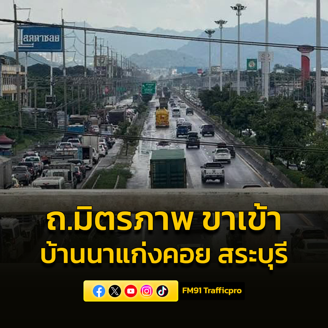 ด้านเพจ ถนนมิตรภาพ รถติดบอกด้วย รายงานจราจร ภาพนี้ เมื่อเวลา 12.00 น. ถนนมิตรภาพ มุ่งหน้าสระบุรี ช่วงต่างระดับเขาใหญ่ การจราจรเริ่มติดขัดแล้ว ในพื้นที่มีงานทำถนนด้วย