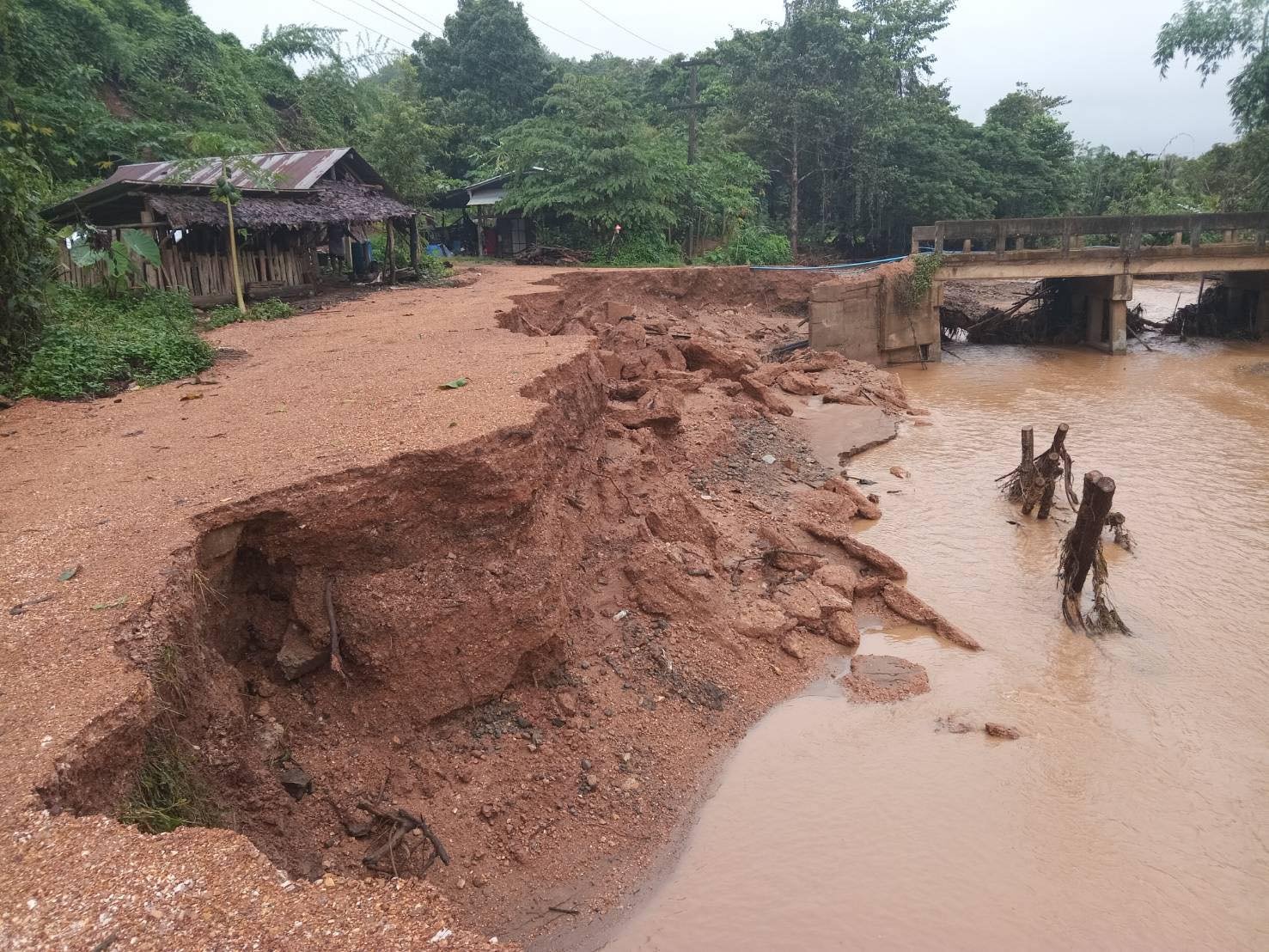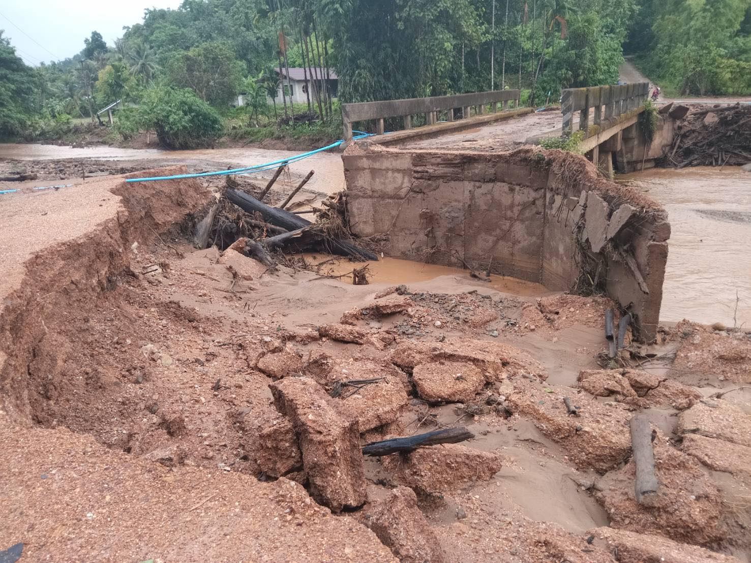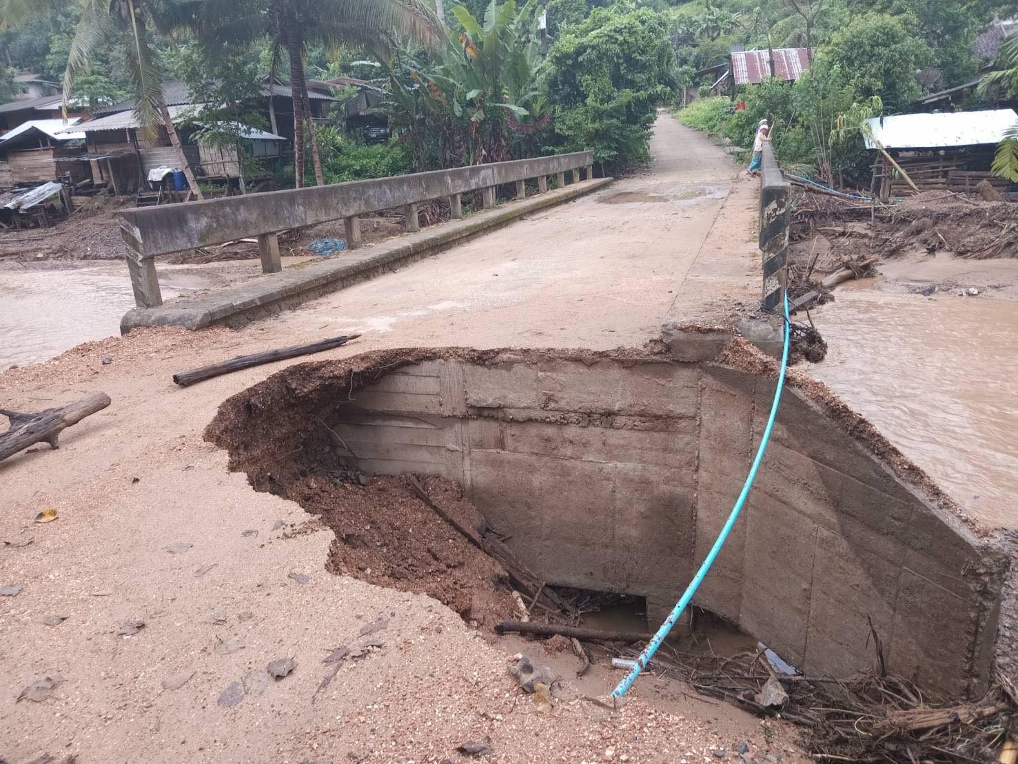 สะพาน 2 แห่งถูกน้ำกัดเซาะชำรุด ไม่สามารถสัญจรผ่านได้บางจุด