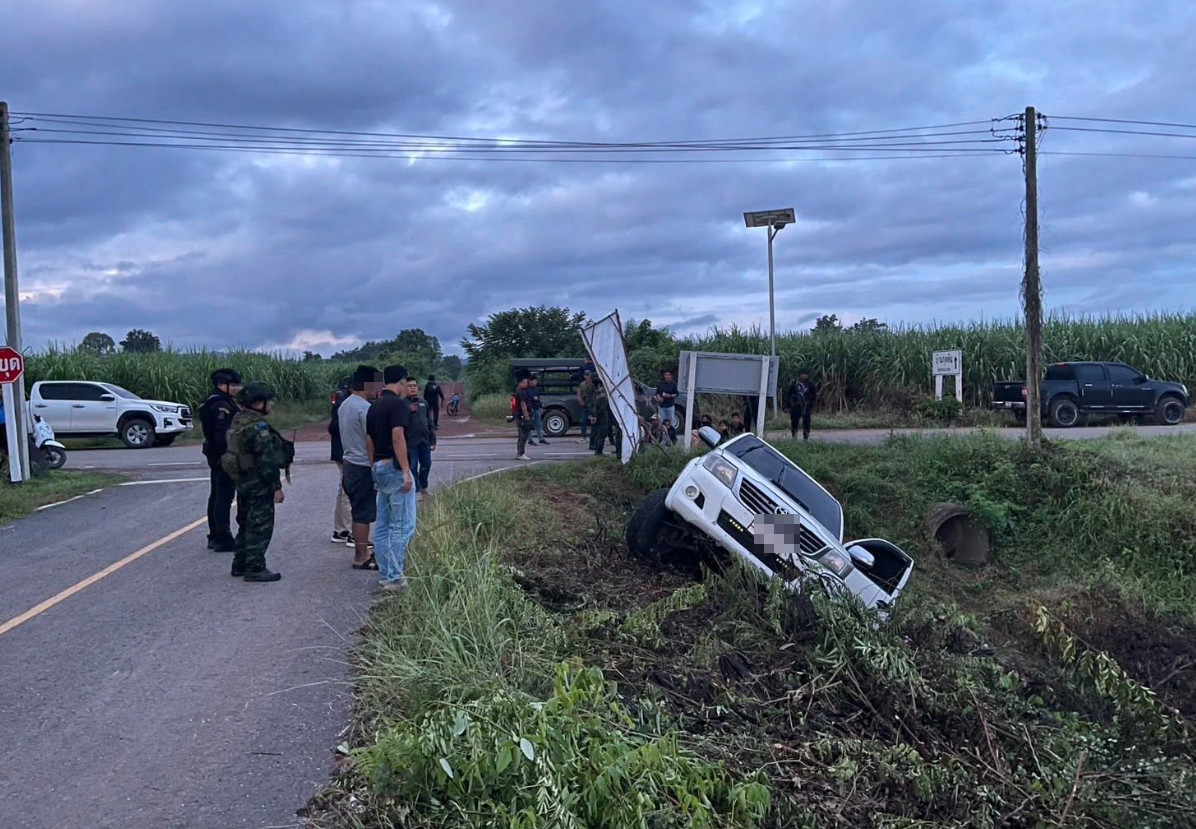 โดยระหว่างการหลบหนี รถกระบะได้ เสียหลักตกข้างทาง บริเวณบ้านสลองคอง ม.3 เมื่อเจ้าหน้าที่รุดเข้าตรวจสอบ บุคคลที่นั่งอยู่ภายในรถได้พากันวิ่งหลบหนี ออกจากรถทันทีอย่างรวดเร็ว เจ้าหน้าที่ได้ออกติดตามควบคุมตัวผู้ที่วิ่งหลบหนี พบว่าเป็นชาวกัมพูชาทั้งหมด 10 คน (ชาย 6 คน หญิง 3 คน และผู้ติดตามเยาวชนหญิง 1 คน) และจากการตรวจสอบรถยนต์คันดังกล่าวพบผู้ขับขี่รถยนต์เป็นชาวไทย ซึ่งถูกเจ้าหน้าที่ควบคุมตัวไว้ได้เช่นกัน โดยรับสารภาพได้รับจ้างขนข้ามแดนจริงจาก