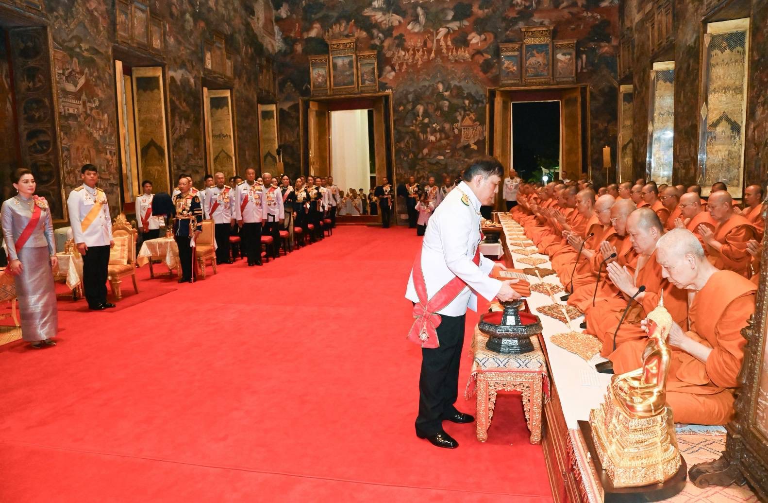 เมื่อเสด็จพระราชดำเนินถึงวัดสุทัศนเทพวราราม พระบาทสมเด็จพระเจ้าอยู่หัว เสด็จเข้าพระวิหารหลวง ทรงจุดธูปเทียนเครื่องนมัสการบูชาพระพุทธศรีศากยมุนี แล้วทรงจุดธูปเทียนเครื่องทองน้อยถวายราชสักการะพระบรมราชสรีรางคาร พระบาทสมเด็จพระปรเมนทรมหาอานันทมหิดล พระอัฐมรามาธิบดินทร ทรงกราบ แล้วเสด็จเข้าพระอุโบสถ ทรงวางผ้าไตรเหนือพานแว่นฟ้าที่หน้าอาสน์สงฆ์ จากนั้น เสด็จพระราชดำเนินไปทรงจุดธูปเทียนเครื่องนมัสการบูชาพระพุทธตรีโลกเชฏฐ พระประธานพระอุโบสถ ทรงกราบ ทรงหยิบผ้าห่มสำหรับพระประธานที่วางอยู่บนผ้าไตร พระราชทานเจ้าพนักงานภูษามาลา เสร็จแล้ว พระราชทานพระบรมราชวโรกาสให้ นายพจนาถ ปัญญาศิลป์ ผู้อำนวยการกองศาสนูปถัมภ์ กราบบังคมทูลรายงานจำนวนพระสงฆ์ จบแล้ว ทรงหยิบผ้าไตรที่พานแว่นฟ้าพาดระหว่างพระกร ทรงกล่าวคำถวายผ้าพระกฐิน ทรงวางผ้าไตรไว้บนพานแว่นฟ้าที่เดิม แล้วทรงประเคนผ้าไตรและเทียนปาฏิโมกข์แด่พระสงฆ์ รูปที่ ๒ เมื่อพระสงฆ์ทำพิธีกฐินกรรมแล้ว และพระสงฆ์ผู้ครองผ้าพระกฐินออกไปครองผ้าพระกฐินเสร็จแล้ว พระบาทสมเด็จพระเจ้าอยู่หัว ทรงพระกรุณาโปรดเกล้าโปรดกระหม่อมให้ สมเด็จพระเจ้าลูกยาเธอ เจ้าฟ้าทีปังกรรัศมีโชติ มหาวชิโรตตมางกูร สิริวิบูลยราชกุมาร เสด็จไปถวายเครื่องบริวารพระกฐินแด่พระสงฆ์ผู้ครองผ้าพระกฐิน ทรงหลั่งทักษิโณทก พระสงฆ์ถวายอนุโมทนา ถวายอดิเรก ต่อจากนั้น เสด็จพระราชดำเนินไปทรงกราบที่หน้าเครื่องนมัสการ ทรงลาพระสงฆ์