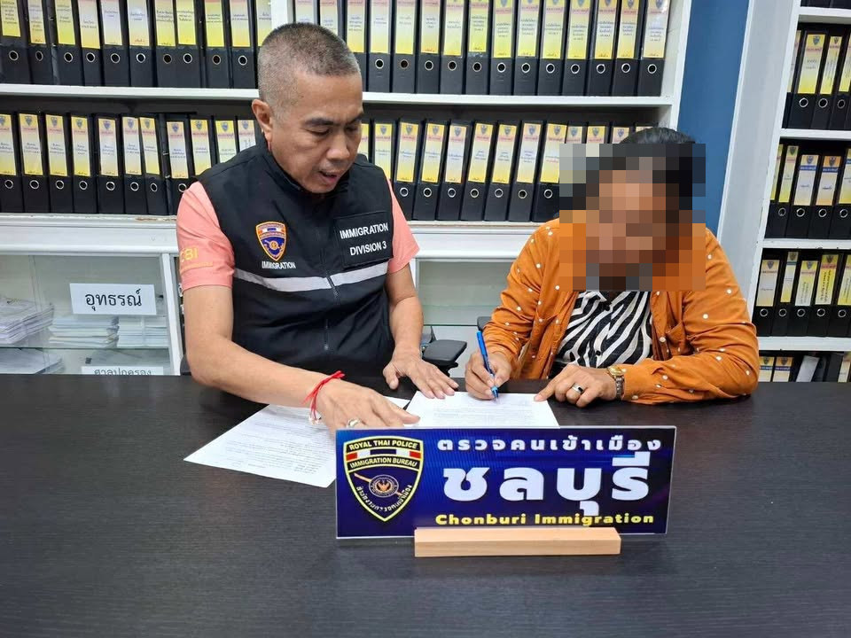 อีกราย เป็นหญิงสัญชาติกัมพูชา ขายส้มตำไก่ย่างหน้าร้าน พบว่าการอนุญาตอยู่ในราชอาณาจักรสิ้นสุดกว่า 900 วัน และไม่มีใบอนุญาตทำงาน ถูกจับในข้อหา “เป็นคนต่างด้าวทำงานโดยไม่มีใบอนุญาตทำงาน และอยู่ในราชอาณาจักรโดยการอนุญาตสิ้นสุด” เจ้าหน้าที่ได้ควบคุมตัวผู้ต้องหาทั้งสอง พร้อมทำบันทึกจับกุม ส่งดำเนินคดีที่ สภ.บางละมุง