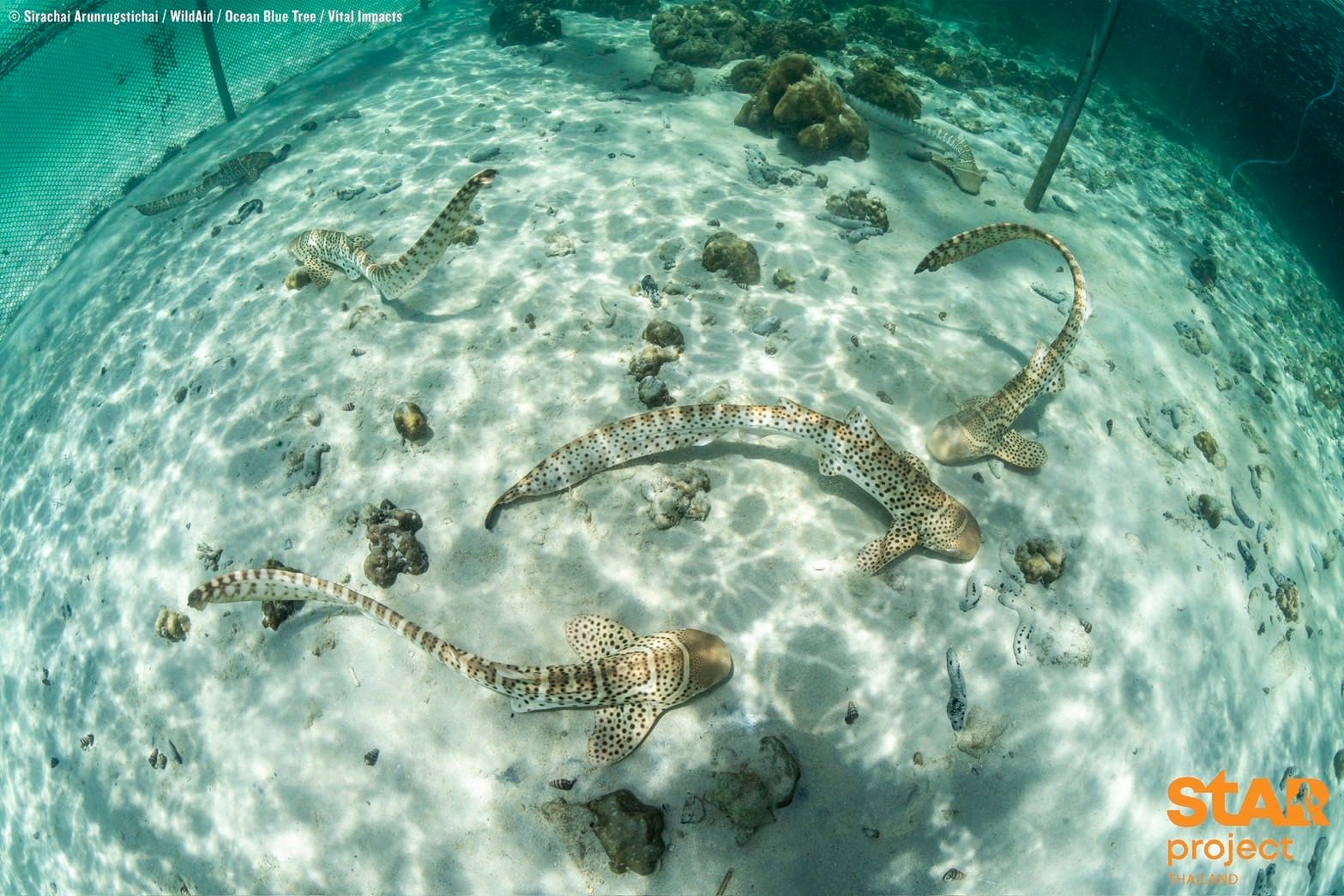 ฉลามเสือดาวทั้งสามตัว ได้แก่ มาหยา (Maya), สิมิลัน (Similan) และ จิงเจอร์ (Ginger) ที่เกิดจากความสำเร็จของโครงการเพาะพันธุ์ฉลามเสือดาวของอควาเรีย ภูเก็ต (Aquaria Phuket) ปัจจุบันมีอายุเฉลี่ยหนึ่งปีครึ่งและมีความยาวประมาณหนึ่งเมตร ได้รับการอนุบาลโดยเจ้าหน้าที่ดูแลฉลามโครงการ StAR ประเทศไทยเพื่อปรับตัวให้คุ้นเคยกับสภาพแวดล้อมทางทะเลตามธรรมชาติ และฝึกการหาอาหารด้วยตนเองในพื้นที่คอกทะเลบนเกาะไม้ท่อน นอกจากนี้ เพื่อเป็นการเตรียมความพร้อมของฉลามเสือดาวก่อนปล่อยคืนสู่ธรรมชาติ สัตวแพทย์จากกรมทรัพยากรทางทะเลและชายฝั่ง (ทช.) และ โอเชียนปาร์ค ฮ่องกง (Ocean Park Hong Kong) พันธมิตรสำคัญของโครงการ ได้ตรวจและประเมินสุขภาพของฉลามเสือดาวทั้งสามตัวอย่างละเอียด ก่อนการติดตั้งเครื่องส่งสัญญาณเสียงเพื่อติดตามการเคลื่อนที่และปล่อยคืนสู่ธรรมชาติ โดยเครื่องส่งสัญญาณเสียงนี้มีอายุการใช้งานเฉลี่ย 5 ปี และสามารถส่งสัญญาณเสียงความถี่เฉพาะตัวที่ตรวจจับได้โดยเครื่องรับสัญญาณเสียงใต้น้ำ (Acoustic receiver)