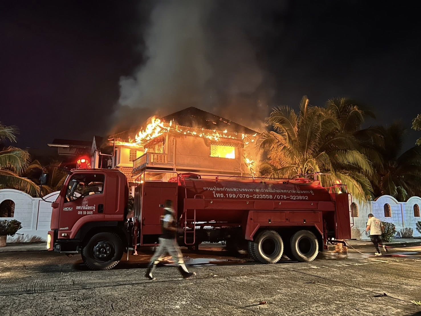 เพลิงไหม้บ้านพักหรู ย่านกะทู้ วอดทั้งชั้น เสียหายนับสิบล้านบาท จ.ภูเก็ต