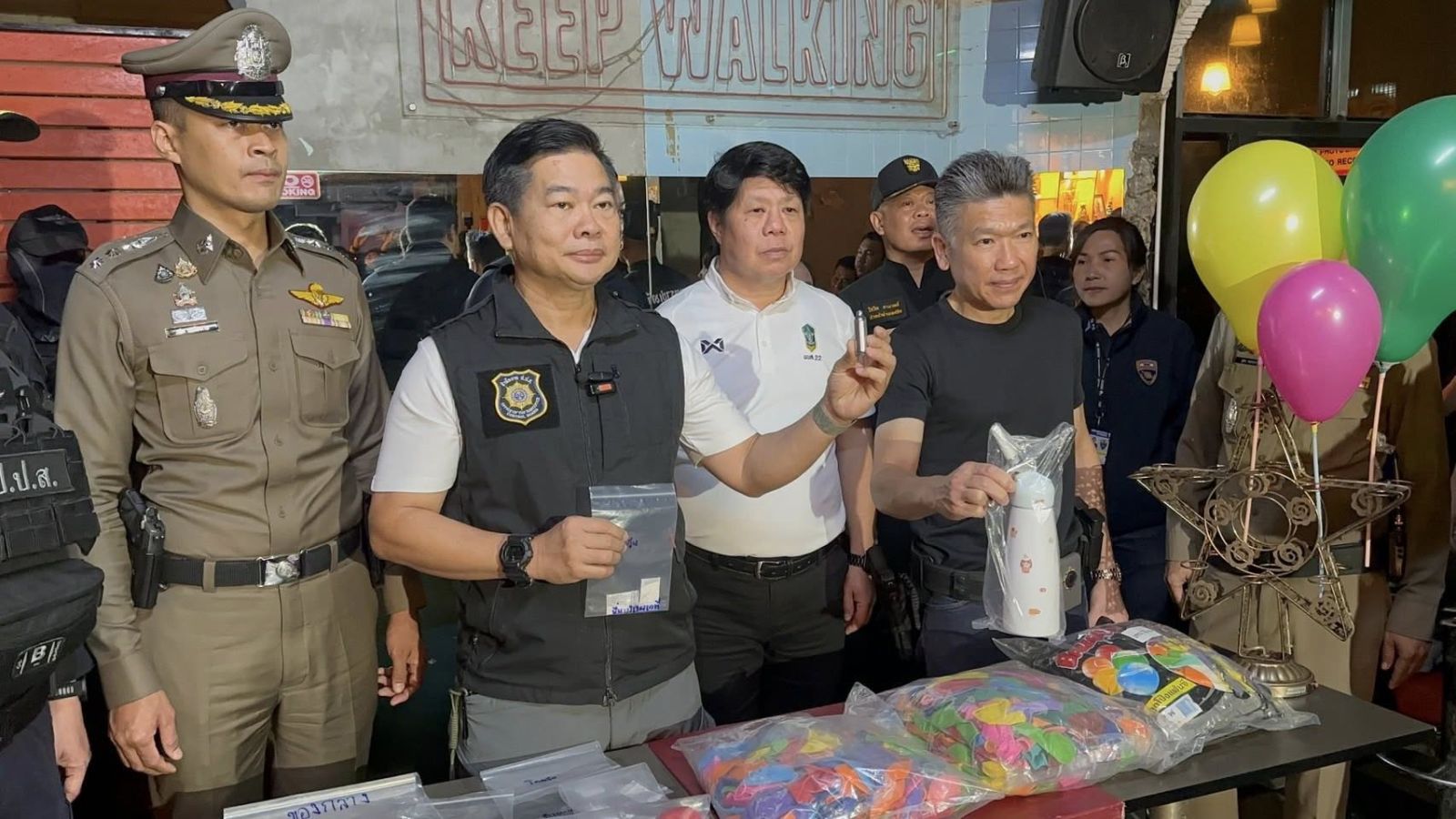 พ.ต.ต.สุริยา สิงหกมล เลขาธิการ ป.ป.ส. เปิดเผยว่า เจ้าหน้าที่ ป.ป.ส.ได้สืบสวนติดตามผู้ต้องหาชาวต่างชาติคนหนึ่ง มีพฤติการณ์ลักลอบนำยาเสพติดมาจำหน่ายให้กับนักท่องเที่ยวภายในสถานบันเทิงแห่งนี้ จึงขยายผลเข้าตรวจสอบ โดยร้านนี้พบว่า เปิดให้บริการมานานกว่า 1 ปี เจ้าหน้าที่ยังพบว่า ทางร้านลักลอบจำหน่ายยาเสพติด ทั้งบุหรี่ไฟฟ้า กัญชา แก๊สหัวเราะ แต่จากการสอบถามเจ้าของร้าน ให้การปฏิเสธเกี่ยวข้องกับยาเสพติด