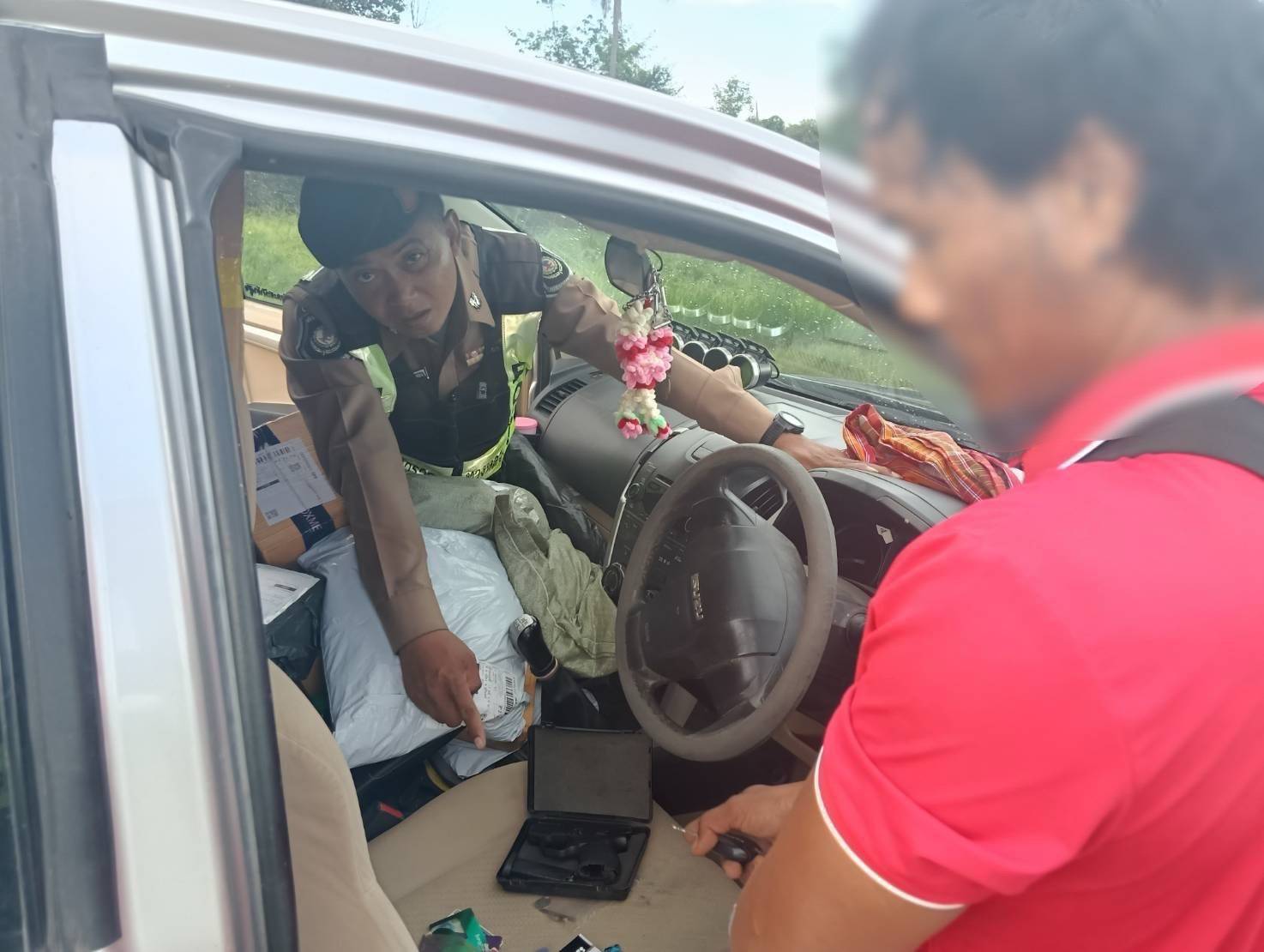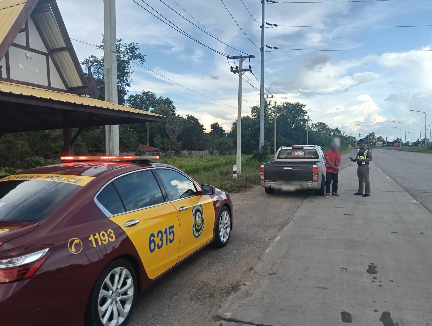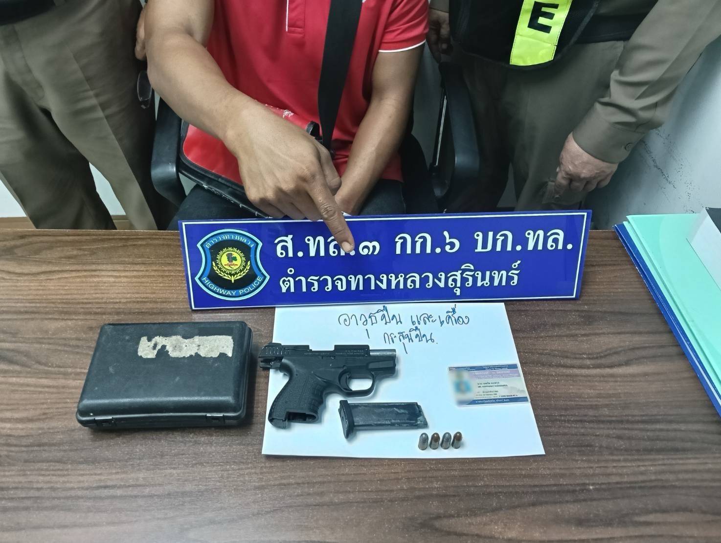 ตำรวจทางหลวง จับหนุ่มซิ่งกระบะ พกปืนเถื่อนกลางเมืองสุรินทร์