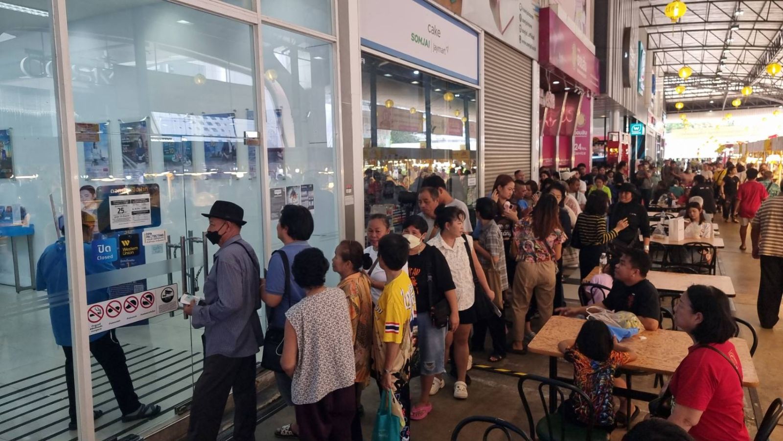นนทบุรี : วันที่ 20 ต.ค.68 ประชาชนแห่ยืนรอต่อแถวที่หน้าธนาคารกรุงไทยแต่เช้าตรู่ เพื่อยืนยันตัวตนขอรับสิทธิในโครงการคนละครึ่งพลัส 2568 ของรัฐบาลในวันแรกอย่างคึกคัก