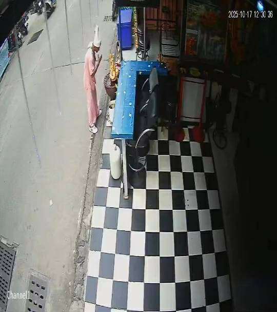 เหตุที่สอง วันที่ 17 ตุลาคม กล้องอีกมุมจับภาพชายเร่ร่อนอีกคน สวมเสื้อสีชมพู เดินวนอยู่หน้าร้านข้างเคียงช่วงเที่ยงวัน จากนั้นยืนพูดคุยกับองค์พญานาคและพระแม่ธรณี บริเวณอ่างปลาหน้าร้าน ก่อนจะชัก มีดพก ออกมาทำท่าคล้ายจะแทง พร้อมพูดคนเดียวเสียงดังราวกับประกอบพิธีบางอย่าง สร้างความหวาดผวาให้คนในละแวกนั้น เจ้าของร้านต้องรีบนำอ่างปลาและสิ่งศักดิ์สิทธิ์ทั้งหมดเข้ามาไว้ในร้าน เพราะกลัวถูกทำร้าย ตอนนั้นเราก็งงมาก เหมือนเขาคุยกับใครบางคน ทั้งที่ตรงนั้นไม่มีใครเลย เหมือนเห็นในสิ่งที่เราไม่เห็น