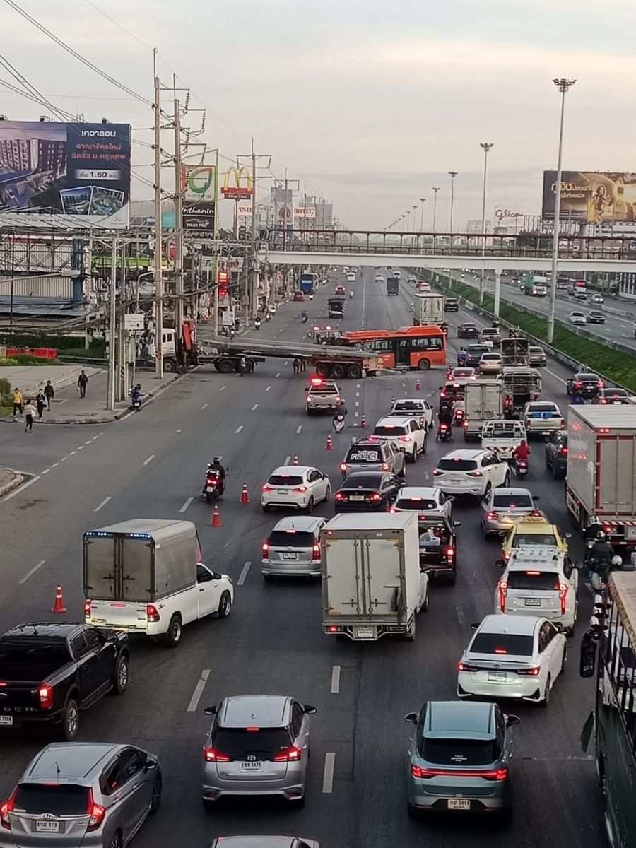 อุบัติเหตุ เมื่อเวลาประมาณ 05.00 น. วันที่ 23 ตุลาคม 2568 รถประจำทางปรับอากาศ ชนท้ายรถพ่วงบรรทุกเสาเข็ม หน้ามหาวิทยาลัยกรุงเทพ ถนนพหลโยธิน ขาออก พื้นที่ สภ.คลองหลวง จังหวัดปทุมธานี ส่งผลให้การจราจรเช้านี้ติดขัดมาก