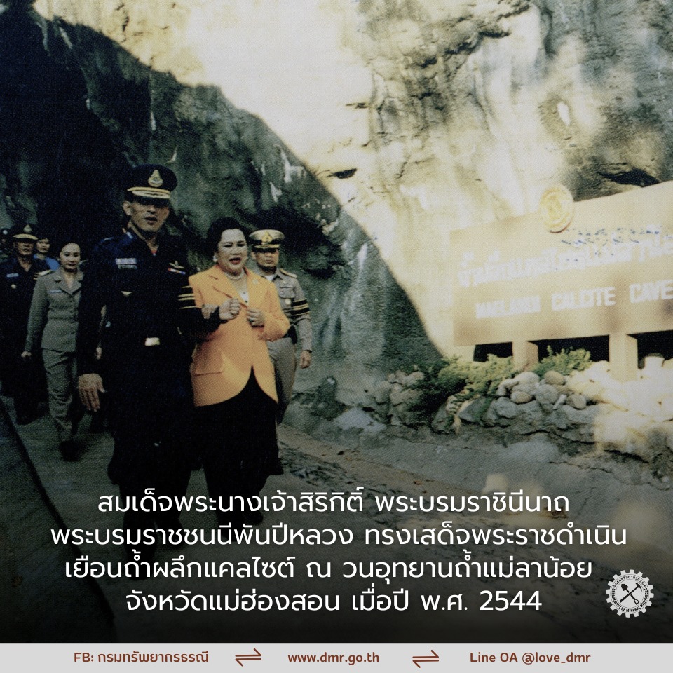27 ตุลาคม 2568 กรมทรัพยากรธรณี เผยแพร่ภาพและข้อความระบุ "สถิตกลางใจประชาราษฎร์ ด้วยสำนึกในพระมหากรุณาธิคุณตราบนิจนิรันดร์ ที่สมเด็จพระนางเจ้าสิริกิติ์ พระบรมราชินีนาถ พระบรมราชชนนีพันปีหลวง ทรงเสด็จพระราชดำเนินพร้อมด้วยพระบาทสมเด็จพระวชิรเกล้าเจ้าอยู่หัว (ขณะทรงดำรงพระอิสริยยศสมเด็จพระบรมโอรสาธิราชฯ) เยือนถ้ำผลึกแคลไซต์ ณ วนอุทยานถ้ำแม่ลาน้อย จังหวัดแม่ฮ่องสอน เมื่อปี พ.ศ. 2544 ในการนี้ ทรงพระราชทานนามใหม่ว่า "ถ้ำแก้วโกมล" แทนชื่อเดิม พร้อมทั้งทรงพระราชทานชื่อเรียกห้องถ้ำทั้ง 5 โถงตามลักษณะเฉพาะ พระทัยธาร, วิมานเมฆ, เฉกหิมพานต์, ม่านผาแก้ว และเพริศแพร้วมณีบุปผา