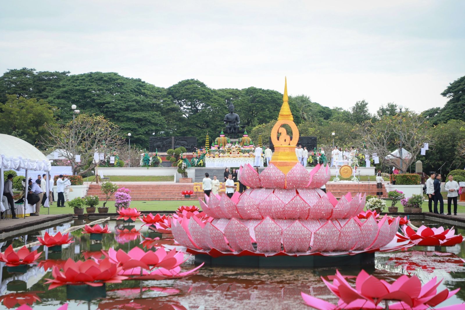 วันนี้ (27 ตุลาคม 68) เวลา 05.30 น. ณ เจดีย์กลางน้ำและสะพานบุญ วัดตระพังทอง ตำบลเมืองเก่า อำเภอเมืองสุโขทัย จังหวัดสุโขทัย นายนพฤทธิ์ ศิริโกศล ผู้ว่าราชการจังหวัดสุโขทัย เป็นประธานในพิธีรับรุ่งอรุณแห่งความสุข เนื่องในงานประเพณีลอยกระทง เผาเทียน เล่นไฟ จังหวัดสุโขทัย ประจำปี 2568 โดยมี นางฐิติพร ศิริโกศล นายกเหล่ากาชาดจังหวัดสุโขทัย นางสาวสรินรัตน์ เกิดสกุลรุ่งโรจน์ รองผู้ว่าราชการจังหวัดสุโขทัย นายสมลักษ์ ยกน้อยวงษ์ รองผู้ว่าราชการจังหวัดสุโขทัย นายธีรยุทธ สำราญทรัพย์ รองผู้ว่าราชการจังหวัดสุโขทัย ดร.พรรณสิริ กุลนาถศิริ สมาชิกสภาผู้แทนราษฎรจังหวัดสุโขทัย เขต 1 พร้อมด้วย ศาล อัยการ ทหาร ตำรวจ นายอำเภอ หัวหน้าส่วนราชการ ข้าราชการ เจ้าหน้าที่ ประชาชนและนักท่องเที่ยว เข้าร่วมพิธีรับรุ่งอรุณแห่งความสุข เพื่อความเป็นสิริมงคลแห่งเช้าวันใหม่ในวันลอยกระทงจังหวัดสุโขทัย โดยพิธีจะเริ่มขึ้นตั้งแต่ช่วงเช้า พระสงฆ์ให้ศีล เจริญพระพุทธมนต์ และรับบิณฑบาตข้าวสารอาหารแห้งที่บริเวณสะพานบุญ วัดตระพังทอง ถือว่าเป็นกิจกรรมที่สื่อถึงความเป็นสุโขทัยอย่างแท้จริง