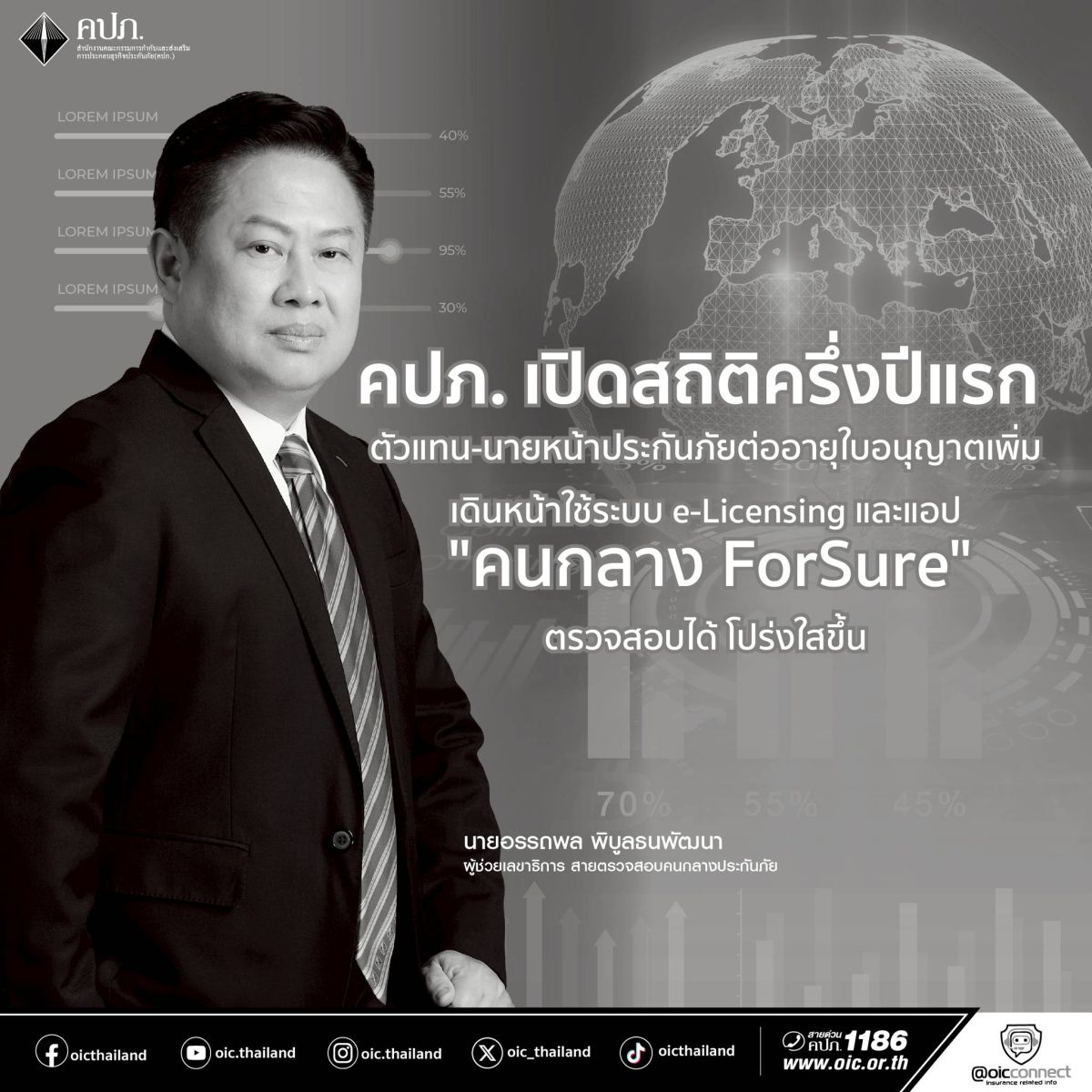 สำนักงาน คปภ. ให้ความสำคัญช่องทางการขายผ่านตัวแทน-นายหน้าประกันภัย ควบคู่กับการคุ้มครองสิทธิประโยชน์และการให้บริการประชาชน จึงได้เร่งสื่อสารและทำความเข้าใจในทุกภาคส่วนที่เกี่ยวข้อง เพื่อให้ตัวแทนและนายหน้าประกันภัยดำเนินการลงทะเบียนใช้งานระบบ e-Licensing และ Application “คนกลาง ForSure” เพื่อสร้างฐานข้อมูลที่ครบถ้วนและเป็นปัจจุบัน เพื่อประโยชน์ในการกำกับดูแลอย่างทั่วถึง ส่งเสริมความโปร่งใส และป้องกันการแอบอ้างหลอกลวง
