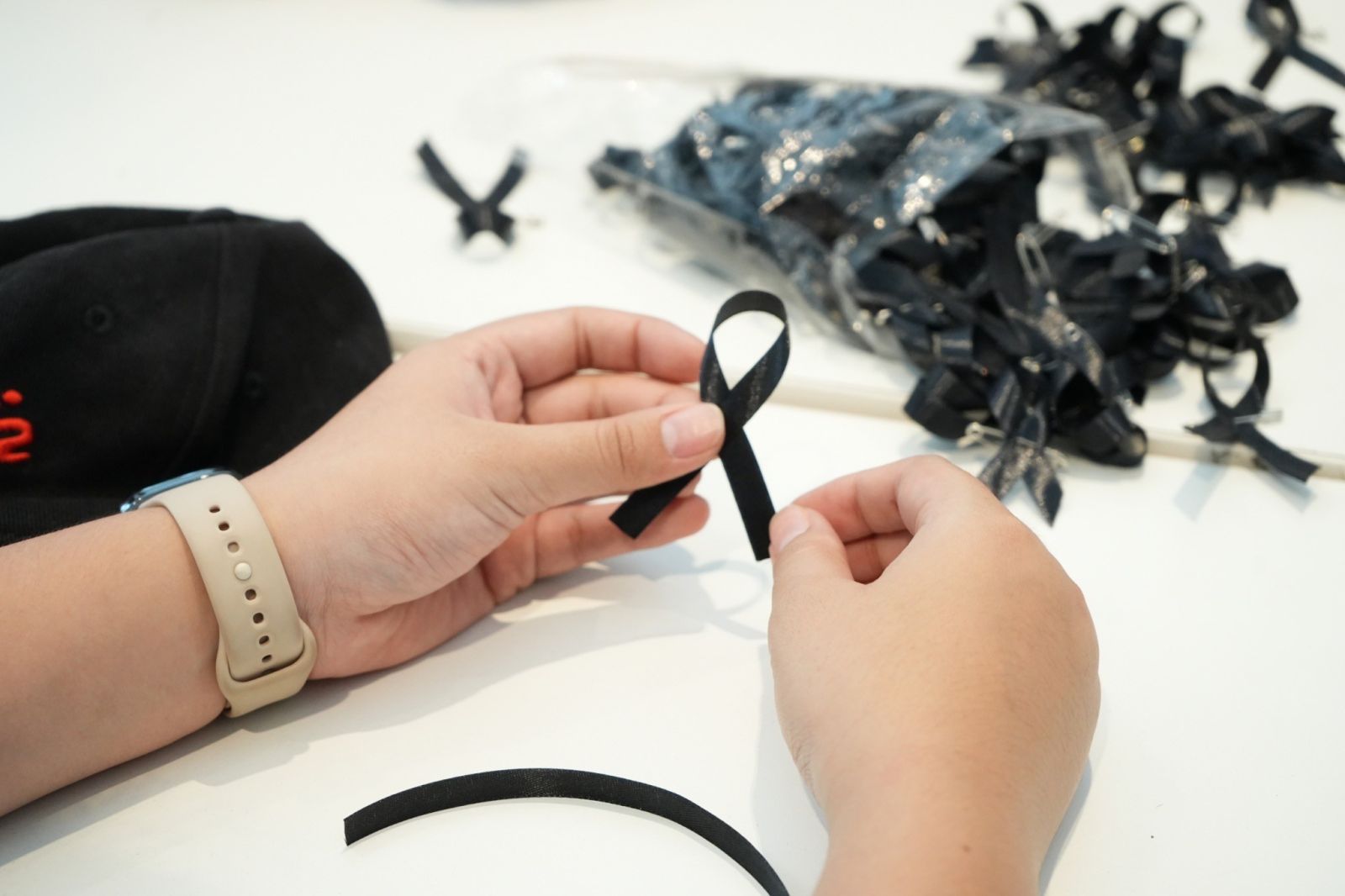 สบพ. จัดกิจกรรม “จิตอาสา” ทำโบว์สีดำ สำหรับร่วมไว้อาลัย จำนวน 2,000 ชิ้น จัดแจกแก่พนักงาน นักเรียน นักศึกษา และประชาชนทั่วไป เพื่อร่วมน้อมถวายความอาลัยแด่สมเด็จพระนางเจ้าสิริกิติ์ พระบรมราชินีนาถ พระบรมราชชนนีพันปีหลวง