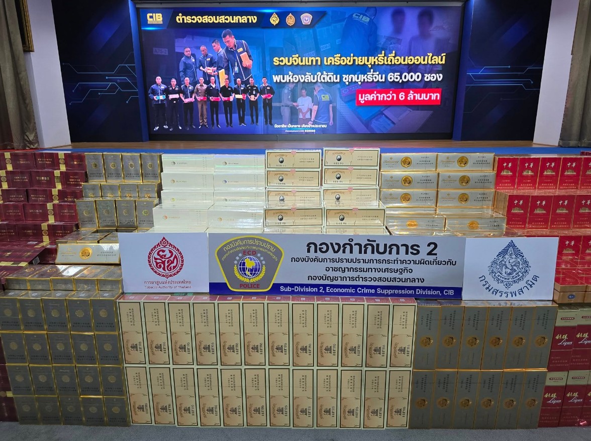 ตำรวจสอบสวนกลาง (CIB) โดย บก. ปอศ. ร่วมกับ กรมสรรพสามิต และเจ้าหน้าที่การยาสูบแห่งประเทศไทย ลงพื้นที่2ตุดในกรุงเทพมหานคร จับกุมนายฟาง (นามสมมุติ) อายุ 34 ปี สัญชาติจีน พร้อมของกลาง บุหรี่จากต่างประเทศจีน ที่มิได้เสียภาษีหรือเสียภาษีไม่ครบถ้วน จำนวน65,000 ซอง โดยเข้าตรวจค้นจุดที่1 บ้านภายในซอยรัชดาภิเษก 10 เขตห้วยขวาง จุดที่ 2 อาคารพาณิชย์ภายในซอยลาดพร้าว 23 กรุงเทพมหานคร