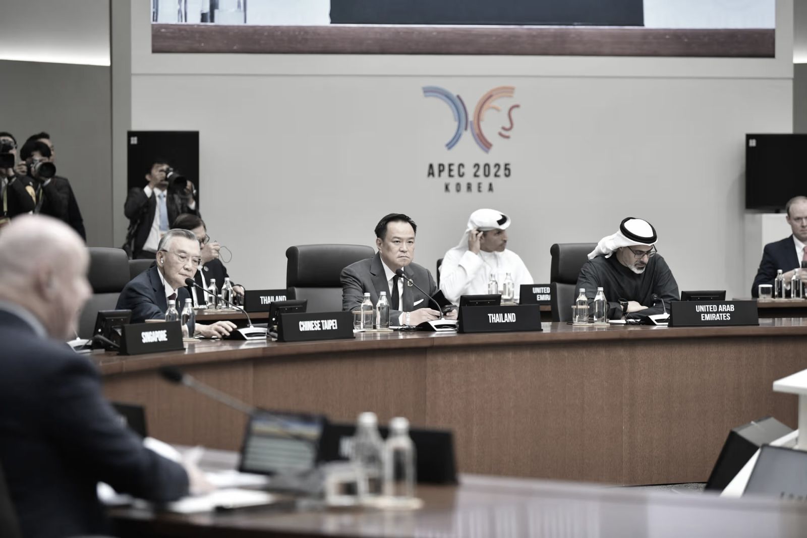 นาย อนุทิน ยังได้กล่าวต้อนรับสหรัฐอาหรับเอมิเรตส์ในฐานะแขกรับเชิญของประธาน พร้อมยกคำกล่าวของผู้อำนวยการ IMF ว่า “ความไม่แน่นอนคือความปกติใหม่” เพื่อเน้นว่า “ความร่วมมือไม่ใช่ทางเลือก แต่เป็นความจำเป็น” นายกฯ เน้นว่า เอเปคต้องคงไว้ซึ่งความเปิดกว้างและการมีส่วนร่วม เพื่อสร้างภูมิภาคที่เข้มแข็งและยืดหยุ่น ไทยสนับสนุนการค้าเสรี การลงทุนยั่งยืน และการพัฒนาทักษะดิจิทัล–AI เพื่อให้ผู้ประกอบการทุกระดับ โดยเฉพาะ MSMEs ได้รับประโยชน์ พร้อมขับเคลื่อนโครงการ Thailand FastPass อำนวยความสะดวกการลงทุนในพลังงานสะอาด โครงสร้างพื้นฐานดิจิทัล และเทคโนโลยีขั้นสูง