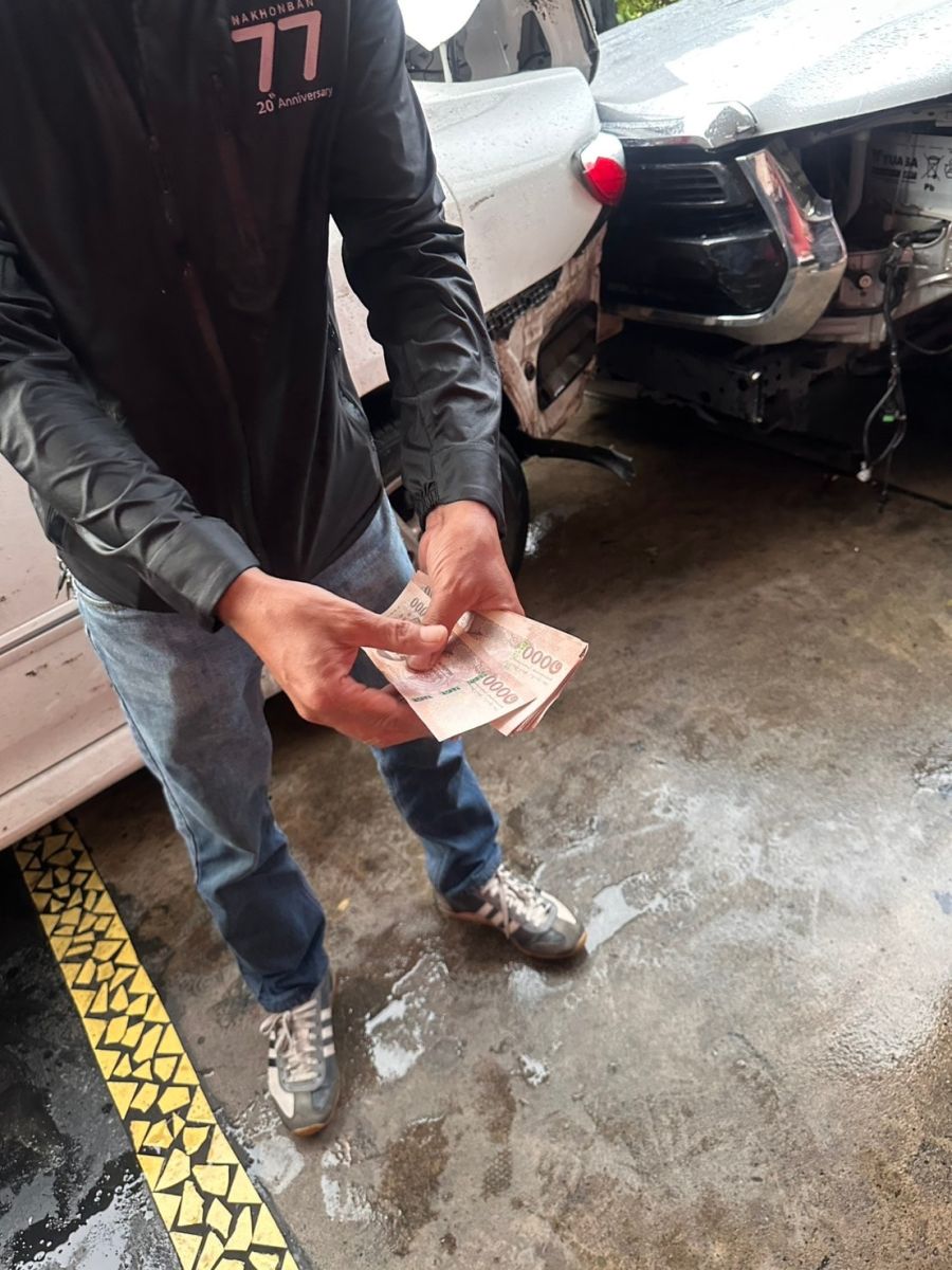 ต่อมาทราบว่ารถผู้ต้องหาขับขี่เฉี่ยวชนบริเวณด้านท้ายรถยนต์โตโยต้า รีโว้ สีบอร์นเงิน ทะเบียน กรุงเทพฯ โดยจุดชนจะอยู่บริเวณหน้ากรมทหารสื่อสาร ต่อมาผู้เสียหายขอให้ผู้ต้องหาคืนสร้อยคอทองคำมาว่า “เอาทองกูคืนมา ๆ” ผู้ต้องหาพูดขึ้นว่า “ผมไม่ได้เอา”