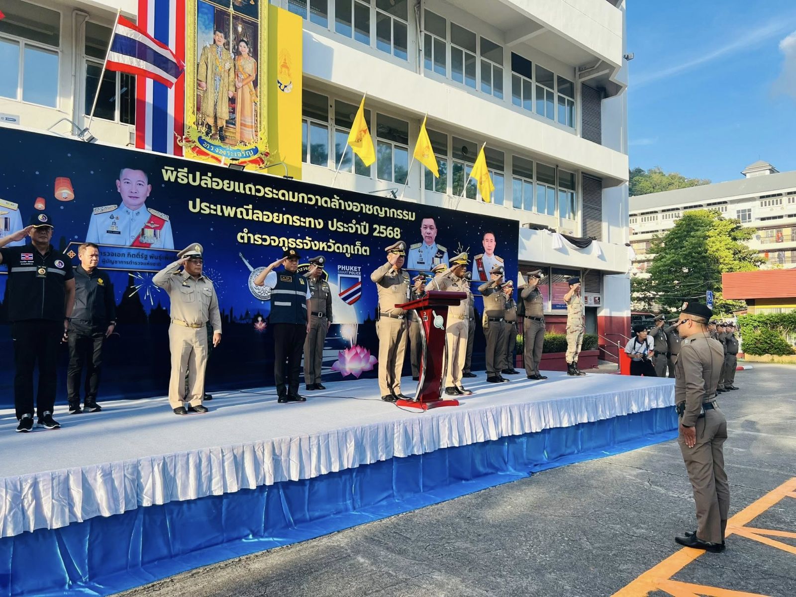 (4 พฤศจิกายน 2568) เวลา 17.00 น. ณ บริเวณลานด้านหน้า สถานีตำรวจภูธรเมืองภูเก็ต พลตำรวจตรีสินเลิศ สุขุม ผู้บังคับการตำรวจภูธรจังหวัดภูเก็ต เป็นประธานในพิธีปล่อยแถวระดมกวาดล้างอาชญากรรม เพื่อดูแลความสงบเรียบร้อยในช่วงประเพณีลอยกระทง ประจำปี 2568 โดยมี นายกองเอก อดุลย์ ชูทอง รองผู้ว่าราชการจังหวัดภูเก็ต, ผู้กำกับการในสังกัดตำรวจภูธรจังหวัดภูเก็ต, หัวหน้า/ผู้แทนหน่วยตำรวจที่มีที่ตั้งอยู่ในจังหวัดภูเก็ต ผู้แทนทัพเรือภาคที่ 3, มณฑลทหารบกที่ 41, กองอำนวยการรักษาความมั่นคงภายในจังหวัดภูเก็ต,ฝ่ายปกครอง, เรือนจำจังหวัดภูเก็ต, ป้องกันและบรรเทาสาธารณภัยจังหวัดภูเก็ต, ประชาสัมพันธ์จังหวัดภูเก็ต, เทศบาลนครภูเก็ต, องค์การบริหารส่วนจังหวัดภูเก็ต รวมทั้ง กำลังพลที่เข้าร่วมในการปล่อยแถวครั้งนี้ ประกอบด้วยเจ้าหน้าที่ตำรวจในสังกัดตำรวจภูธรจังหวัดภูเก็ต, เจ้าหน้าที่ตำรวจสังกัดกองบังคับการสืบสวนตำรวจภูธรภาค 8 , เจ้าหน้าที่ตำรวจจากหน่วยที่มีที่ตั้งอยู่ในจังหวัดภูเก็ต, ฝ่ายทหาร, ฝ่ายปกครอง, มูลนิธิ อาสาสมัคร ภาคประชาชน รวมจำนวน 320 นาย เข้าร่วมในพิธี