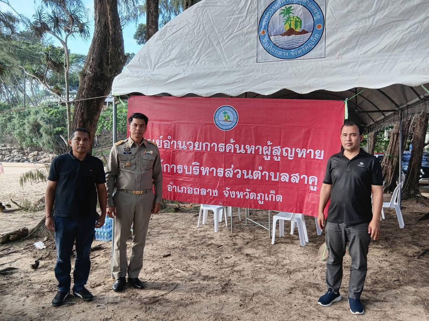 หลังรับแจ้งนายอำเภอถลาง ได้สั่งการให้หน่วยงานที่เกี่ยวข้องเข้าช่วยเหลืออย่างเร่งด่วน โดยมีการบูรณาการกำลังร่วมระหว่าง กำนัน ผู้ใหญ่บ้านตำบลสาคู เจ้าหน้าที่กู้ชีพ–กู้ภัยองค์การบริหารส่วนตำบลสาคู เจ้าหน้าที่มูลนิธิกุศลธรรมภูเก็ต และเจ้าหน้าที่ไลฟ์การ์ดบางเทา ใช้เรือเจ็ตสกีออกค้นหาในทะเล