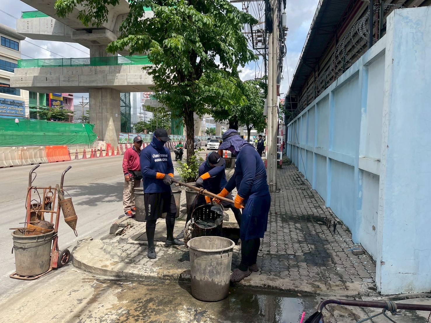 การรถไฟฟ้าขนส่งมวลชนแห่งประเทศไทย (รฟม.) โดย โครงการรถไฟฟ้าสายสีม่วง ช่วงเตาปูน - ราษฎร์บูรณะ (วงแหวนกาญจนาภิเษก) ร่วมกับ เรือนจำกลางคลองเปรม กรมราชทัณฑ์ นำผู้ก้าวพลาดออกลอกท่อระบายน้ำ และบ่อพัก ในแนวสายทางโครงการฯ ช่วงถนนสมเด็จพระเจ้าตากสิน ถนนสุขสวัสดิ์ และถนนเลียบทางพิเศษกาญจนาภิเษก ระยะทางรวมกว่า 2,530 เมตร เพื่อขุดลอกเศษวัสดุต่างๆ ที่อุดตันออกจากท่อระบายน้ำ เพื่อเพิ่มประสิทธิภาพการระบายน้ำให้ดียิ่งขึ้น นอกจากนี้ รฟม. ยังกำชับให้ผู้รับจ้างทุกสัญญายังคงขุดลอกท่อระบายน้ำ และบ่อพัก โดยตลอดแนวสายทางโครงการฯ ตั้งแต่บริเวณถนนสามเสน ถนนพระสุเมรุ ถนนมหาไชย ถนนประชาธิปก ถนนสมเด็จพระเจ้าตากสิน และถนนสุขสวัสดิ์ อย่างต่อเนื่องเป็นประจำทุกเดือน รวมทั้งเน้นย้ำให้ผู้รับจ้างเฝ้าระวังพื้นที่เสี่ยงต่างๆ ที่อาจเกิดน้ำท่วมขังได้ง่ายในช่วงที่มีฝนตกหนัก ควบคู่กับการจัดเตรียมเจ้าหน้าที่ และเครื่องสูบน้ำให้พร้อมใช้งานอยู่เสมอ เพื่อช่วยเหลือและอำนวยความสะดวกให้แก่ประชาชน รวมถึงให้ดูแลความสะอาดพื้นที่ก่อสร้างโดยจัดเก็บวัสดุก่อสร้าง อุปกรณ์และเครื่องจักร จัดหาผ้าใบปกคลุมไว้ให้มิดชิด ป้องกันไม่ให้ดินตะกอนและเศษวัสดุจากการก่อสร้างไปอุดตันท่อระบายน้ำ
