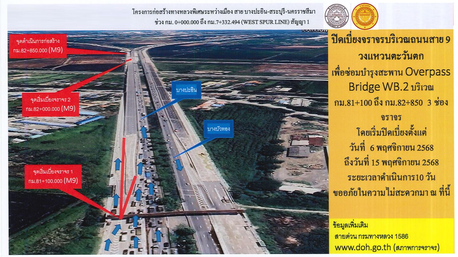 ขออภัยในความไม่สะดวก สอบถามรายละเอียดเพิ่มเติมได้ที่สายด่วนกรมทางหลวง 1586