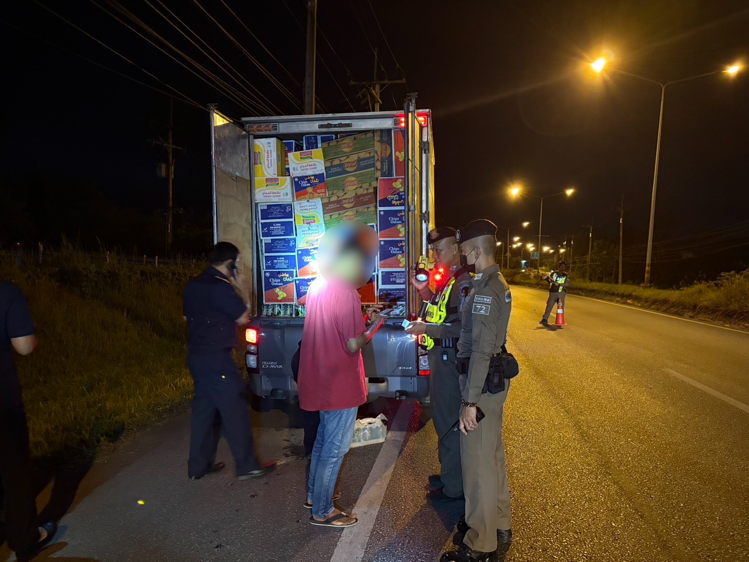 โดยระหว่างที่เจ้าหน้าที่ตำรวจทางหลวงร่วมกับเจ้าพนักงานสรรพสามิตพื้นที่พัทลุง ตั้งจุดตรวจ บนถนนสายพัทลุง - ตรัง พบรถบรรทุกส่วนบุคคลสีเทา ได้บรรทุกของกินอื่นๆ มาเต็มคันรถ และได้บรรทุกเครื่องดื่ม (น้ำอัดลม) ที่ยังมิได้ชำระภาษีสรรพสามิตปะปนมาด้วย เมื่อสังเกตเห็นรถตรงตามที่ได้รับแจ้ง เจ้าหน้าที่ได้ส่งสัญญาณให้รถคันดังกล่าวหยุด เพื่อขอทำการตรวจค้น พบนายเอซึ่งเป็นผู้ขับขี่รถคันดังกล่าวมา เจ้าหน้าที่ขอทำการตรวจค้นภายในรถ ปรากฏว่าพบเครื่องดื่ม (น้ำอัดลม) ที่ยังมิได้ชำระภาษีสรรพสามิตอยู่ภายในรถบรรทุก จึงได้ยึดเครื่องดื่มดังกล่าวไว้เป็นหลักฐาน