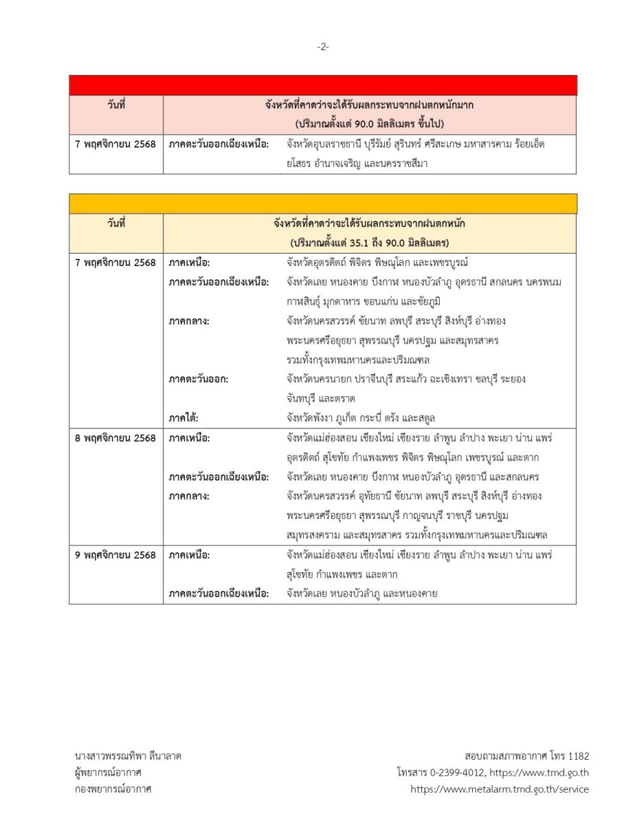 กรมอุตุนิยมวิทยาจะออกประกาศฉบับต่อไปในวันที่ 6 พฤศจิกายน พ.ศ. 2568 เวลา 18.00 น.