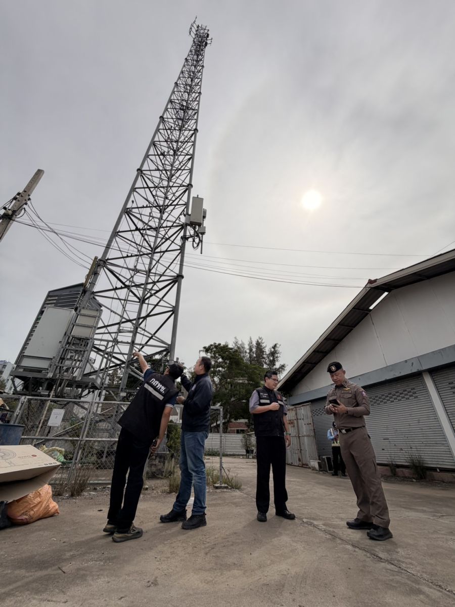 โดยเจ้าหน้าที่เข้าตรวจสอบเสาสัญญาณโทรศัพท์แห่งหนึ่งในพื้นที่ ต.ป่าไร่ อ.อรัญประเทศ จ.สระแก้ว ห่างจากชายแดนไทย–กัมพูชาประมาณ 25 เมตร ซึ่งจากการตรวจสอบพบว่า เสานี้ถูกใช้ส่งสัญญาณออกไปถึงประเทศเพื่อนบ้าน และถูกกลุ่มมิจฉาชีพใช้โทรหลอกคนไทยมากกว่า 37,175 ครั้ง