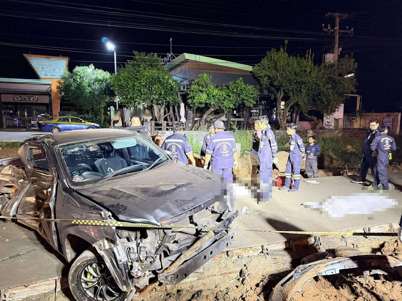 โดยที่เกิดเหตุพบรถ รถยนต์กระบะ อีซูซุ ดีแม็กซ์ สีเทา ป้ายทะเบียน กรุงเทพฯ สภาพด้านหน้ารถพังเสียหาย, รถยนต์กระบะ อีซูซุ ดีแม็กซ์ สีเทา ป้ายทะเบียน พิษณุโลก เสียหายรอบคัน, รถยนต์กระบะ นิสสัน นาวาร่า สีดำ ป้ายทะเบียน พิษณุโลก เสียหายด้านท้ายรถ และรถจักรยานยนต์ ฮอนด้า เวฟ สีเขียว - ดำ ป้ายทะเบียน พิษณุโลก สภาพพังเสียหาย