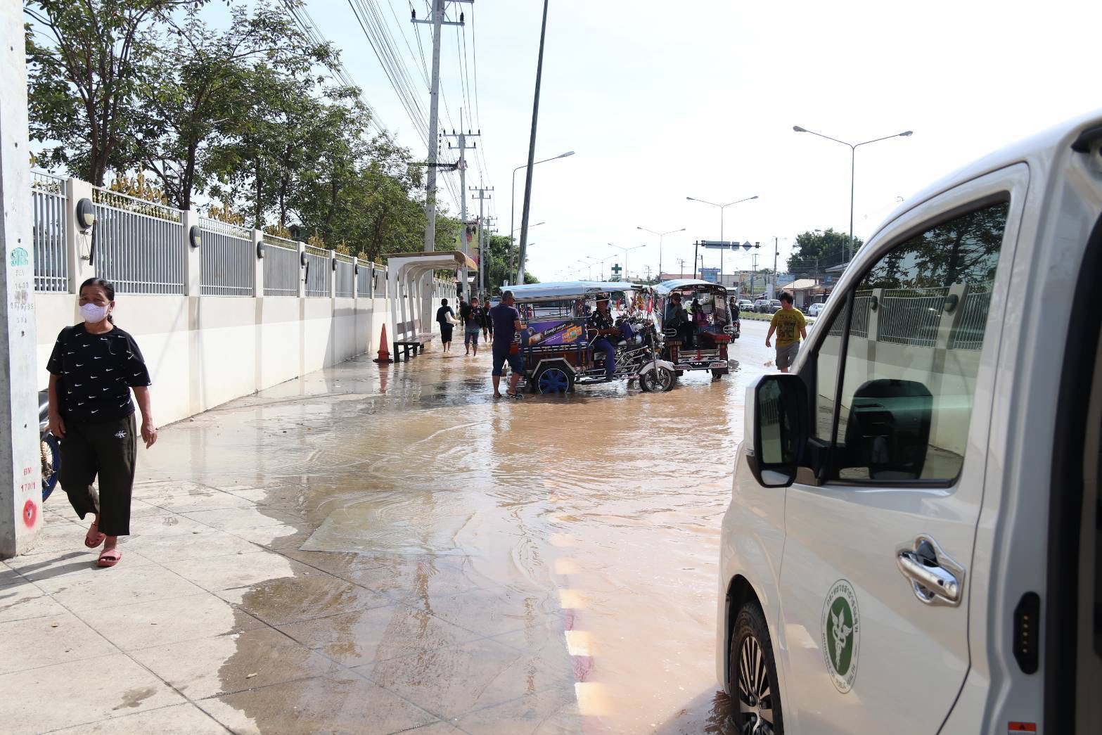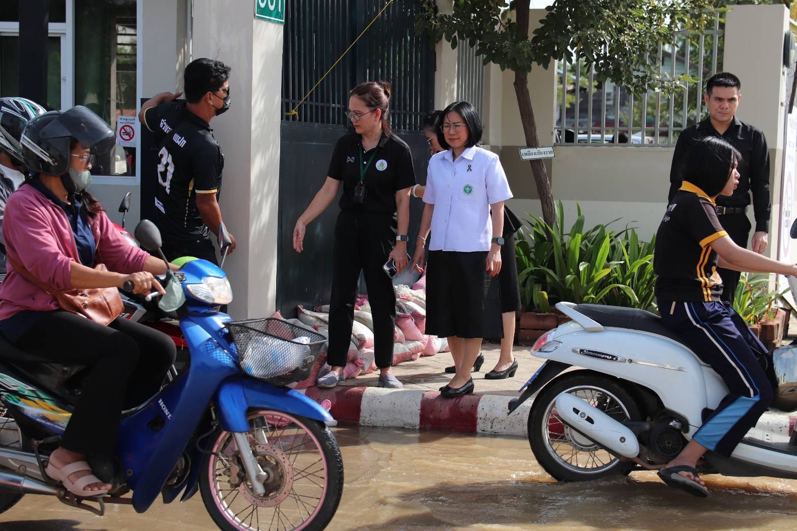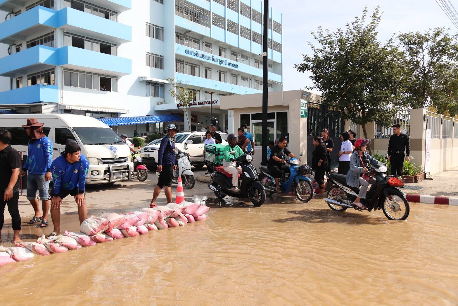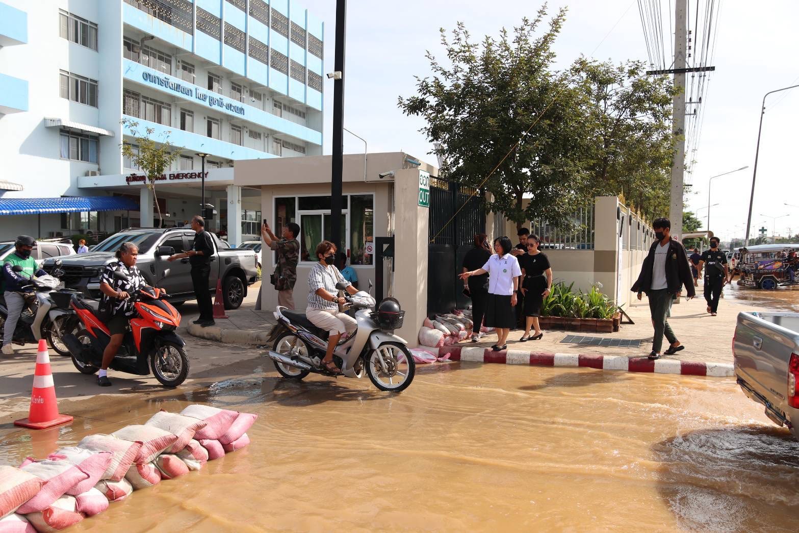 พญ.ธัญญารัตน์ สิทธิวงศ์ นายแพทย์สาธารณสุขจังหวัดสุโขทัย ลงมาให้บริการและแจ้งให้ผู้มารับบริการและ จนท.ย้ายรถออกจาก รพ.สุโขทัย เพื่อจะปิดประตูป้องกันน้ำเข้าพื้นที่