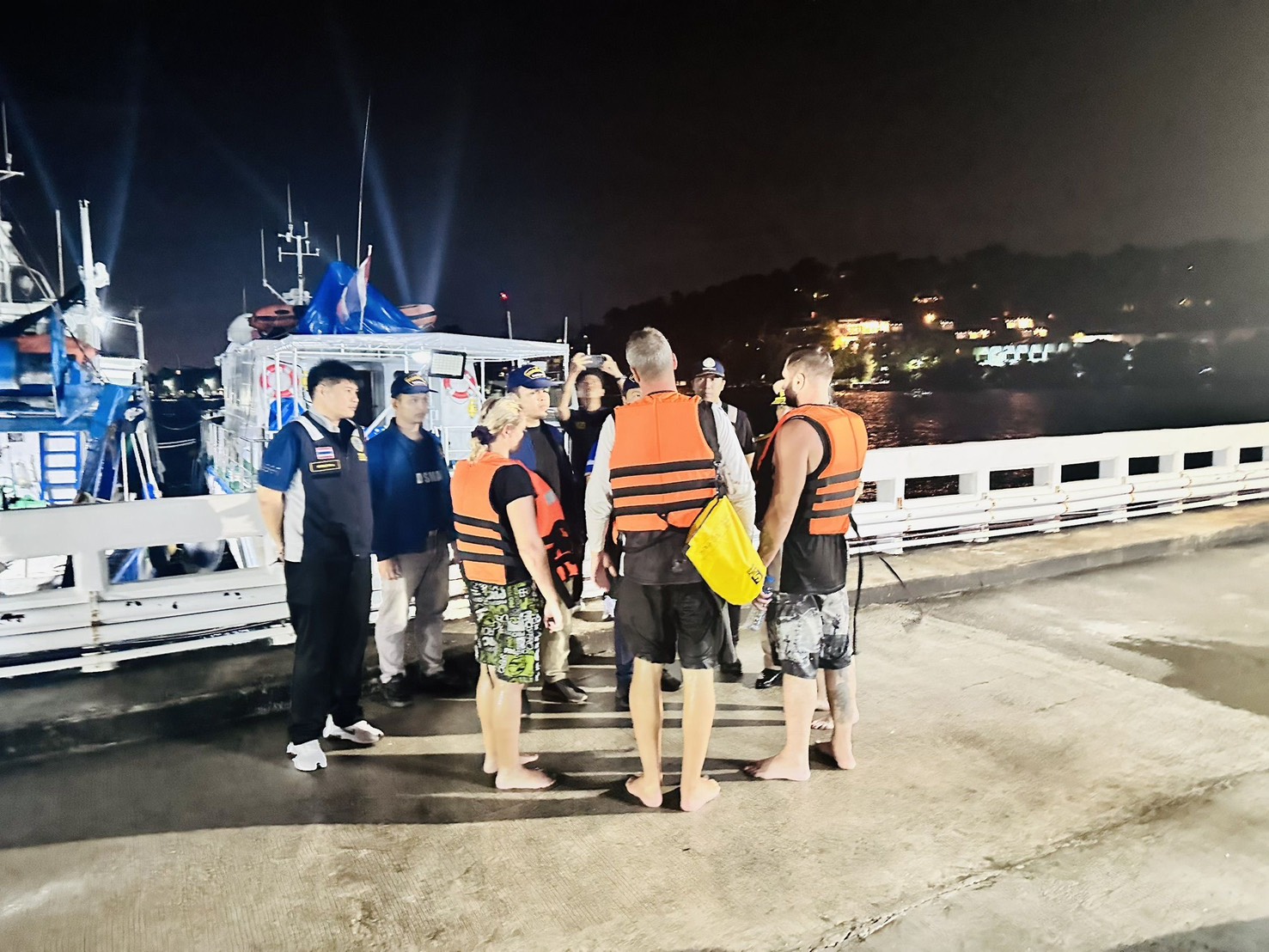 กระทั้งเวลา 00.10 น. พล.ร.ต.สถาพร วาจรัตน์ เสนาธิการทัพเรือภาคที่ 3 พร้อมหน่วยงานต่างๆ ที่เกี่ยวข้อง รับตัวผู้ประสบเหตุขึ้นจากเรือ ต.272 ทั้ง 4 คนปลอดภัยดี แต่มีอาการอ่อนเพลียเล็กน้อย ส่วนนักท่องเที่ยวผู้หญิงมีอาการตกใจกับเหตุการณ์ที่เกิดขึ้น จากนั้นได้ส่งมอบนักท่องเที่ยวทั้ง 4 รายให้กับหน่วยงานที่เกี่ยวข้อง การปฏิบัติภารกิจครั้งนี้เป็นไปด้วยความเรียบร้อยกำลังพลปลอดภัย