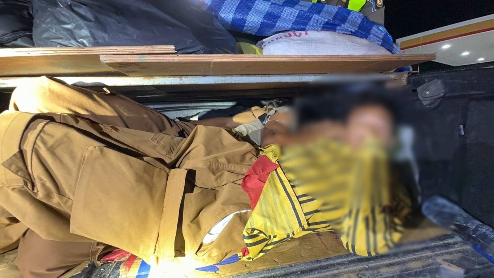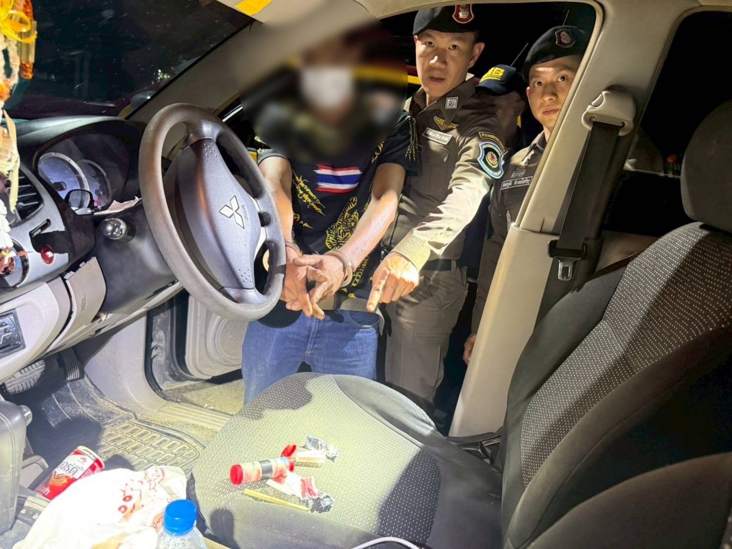 จนกระทั่งมีรถยนต์ต้องสงสัย มีลักษณะกระจกทึบ มีน้ำหนักบรรทุกเกินกว่าปกติ จึงได้สกัดกั้นเละเข้าตรวจสอบ พบนายบุญช่วยฯ แสดงตัวเป็นผู้ขับขี่ และมีคนต่างด้าว นั่งโดยสารอัดมาเต็มในคันรถ จำนวน 10 ราย และท้ายที่กระบะ มีการดัดแปลงนำแผ่นไม้อัดมาวางพาดเพื่อวางสัมภาระที่ด้านบน เพื่อให้ด้านล่างมีช่องสำหรับซุกซ่อนคนต่างด้าวอีก จำนวน 5 ราย จากการตรวจสอบพบเป็นคนต่างด้าว สัญชาติเมียนมาร์ 14 ราย และสัญชาติจีน 1 ราย ที่ปลอมตัวแต่งกาย แฝงตัวมากับชาวเมียนมาร์ ทั้งหมดไม่มีเอกสารประจำตัวมาแสดง จึงคาดว่าเป็นแรงงานต่างด้าวที่หลบหนีเข้าเมืองมาอย่างผิดกฎหมาย และยังได้ตรวจสอบภายในรถยนต์ พบมียาบ้า 34 เม็ด และยาไอช์ 0.3 กรัม ซึ่งนายนายบุญช่วยฯ ผู้ขับขี่ รับว่าเป็นของตนจริง เจ้าหน้าที่ตำรวจทางหลวง จึงได้ทำการตรวจยึดรถยนต์ และยาเสพติดไว้เป็นของกลาง ก่อนนำตัวผู้ต้องหาทั้งหมด นำส่งพนักงานสอบสวน สภ.มหาราช จ.พระนครศรีอยุธยา เพื่อดำเนินคดีตามกฎหมายต่อไป