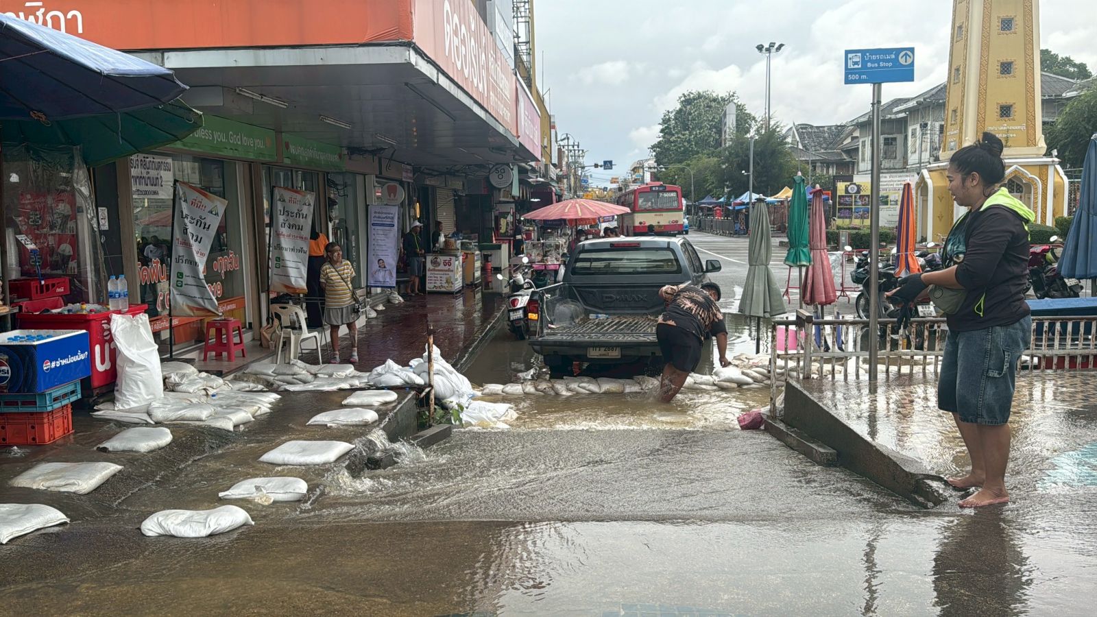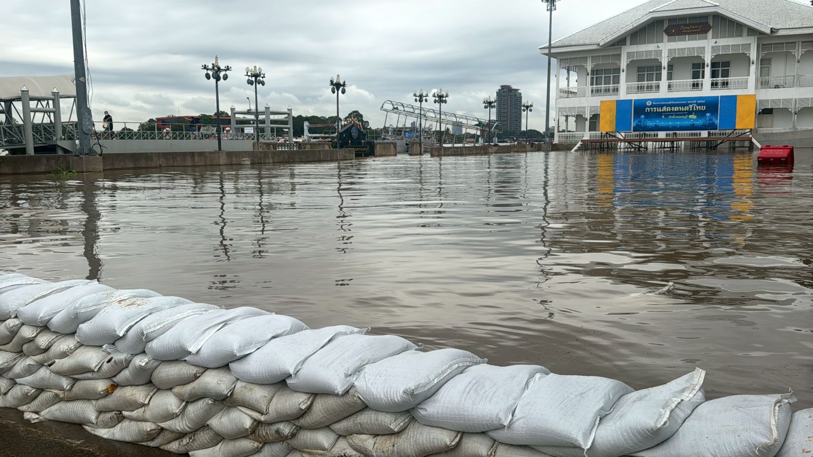 เวลา 09.00 น.วันที่ 8 พ.ย.68 ที่ ท่าน้ำนนทบุรี ต.สวนใหญ่ อ.เมืองนนทบุรี หลังจากเขื่อนเจ้าพระยาเพิ่มการระบายน้ำทำให้จังหวัดนนทบุรี มีปริมาณน้ำขึ้นสูงและประกอบกับมีน้ำทะเลหนุน ทำให้บริเวณลานของเขื่อนตลอดแนวมีน้ำท่วม เจ้าหน้าที่เทศบาลนครนนทบุรี ต้องเร่งนำกระสอบทรายมาวางเสริมแนวคันกั้นน้ำเพื่อเพิ่มความสูงของแนวคัน ตามจุดลุ่มต่ำและพื้นที่เสี่ยงเพื่อไม่ให้น้ำในแม่น้ำเจ้าพระยาไหลเข้าท่วมเพื่อที่เศรษฐกิจ และชุมชน พร้อมเฝ้าระวังตามแนวคันกั้นน้ำติดกับแม่น้ำเจ้าพระยาที่มีระยะทางยาว 10 กิโลเมตร ตลอด 24 ชั่วโมง หากเกิดเหตุฉุกเฉิน
