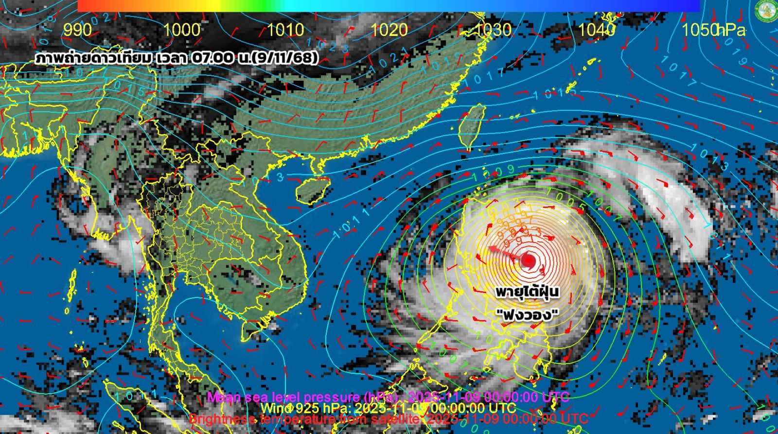 กรมอุตุนิยมวิทยา อัปเดตเส้นทาง พายุไต้ฝุ่น "ฟงวอง (FUNG-WONG)" เช้าวันนี้ 9 พฤศจิกายน 2568 เวลา 07.00 น. พายุนี้กำลังเคลื่อนตัวทางตะวันตกเฉียงเหนือ