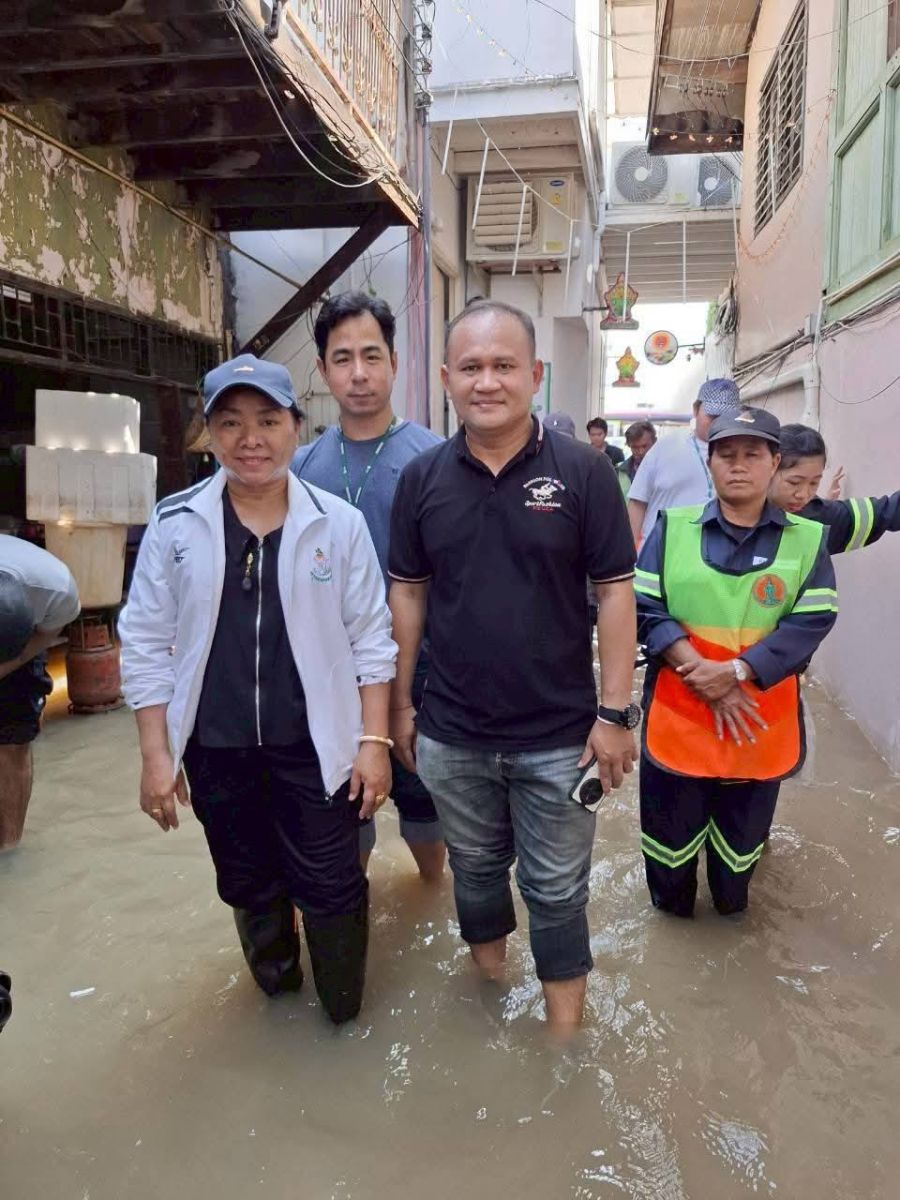 เพื่อตรวจสอบสถานการณ์น้ำในแม่น้ำเจ้าพระยา เนื่องจากมีการปรับเพิ่มการระบายน้ำจากเขื่อนเจ้าพระยา 2,750 ลูกบาศก์เมตร/วินาที ส่งผลให้เกิดน้ำทะลักเข้าสู่บริเวณดังกล่าว สำนักงานเขตบางกอกน้อยได้มีการติดตั้งเครื่องสูบน้ำ จัดทำแนวกระสอบทรายและทำทางเดินบรรเทาความเดือดร้อนแก่ประชาชน
