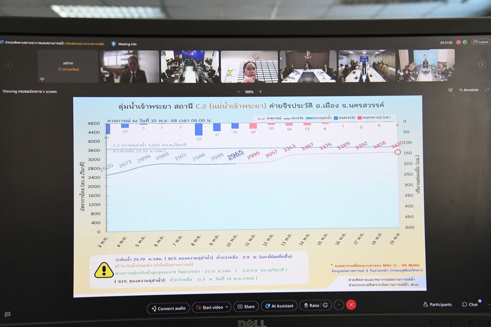 สทนช. หารือหน่วยงานหลังพายุ “คัลแมกี” เติมน้ำอีกระลอกใหญ่ ทยอยเพิ่มการระบายน้ำเขื่อนภูมิพล เร่งระบายมวลน้ำชุดสุดท้ายลงสู่อ่าวไทย คาด 13 พ.ย. เป็นต้นไปปริมาณฝนตอนบนเบาลง อากาศหนาวมาแทนที่ ประเมินระบายน้ำท้ายเขื่อนเจ้าพระยาต่ำกว่า 1,000 ลบ.ม. ต่อวินาที ได้ช่วงกลางเดือน ธ.ค. นี้