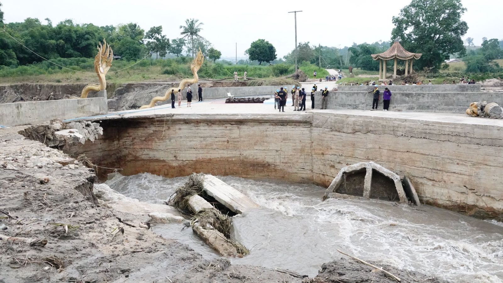 วันที่ 10 พฤศจิกายน 2568 เวลา 15.30 น. นายธีรพัฒน์ คัชมาตย์ ผู้ว่าราชการจังหวัดอุทัยธานี มอบสิ่งของพระราชทานให้ผู้ประสบอุทกภัย จำนวน 40 ชุด น้ำดื่ม 200 แพ็ค และลงพื้นที่ติดตามการแก้ปัญหาบริเวณทางข้ามฝายอีซ่า หมู่ที่ 3 ตำบลทองหลาง อำเภอห้วยคต กับตำบลป่าอ้อ อำเภอลานสัก จังหวัดอุทัยธานี หลังเกิดเหตุคอสะพานข้ามแม่น้ำขาดจากอิทธิพลของน้ำหลาก ทำให้ประชาชนไม่สามารถสัญจรไปมาได้ พร้อมด้วยนางสาวอังศนา ลุยจันทร์ นายกเหล่ากาชาดจังหวัดอุทัยธานี/ประธานแม่บ้านมหาดไทยจังหวัดอุทัยธานี นายทนงศักดิ์ สุวรรณเตมีย์ หัวหน้าสำนักงานป้องกันและบรรเทาสาธารณภัยจังหวัดอุทัยธานี หัวหน้าส่วนราชการ องค์กรปกครองส่วนท้องถิ่น และเจ้าหน้าที่ที่เกี่ยวข้อง ลงพื้นที่ติดตามและดำเนินการแก้ไขปัญหา ติดตั้งสะพานแบรี่ชั่วคราว เพื่ออำนวยความสะดวกให้ประชาชนในพื้นที่สามารถสัญจรได้ตามปกติ พร้อมเร่งสำรวจความเสียหายเพิ่มเติมเพื่อวางแผนซ่อมแซมถาวรในระยะต่อไป